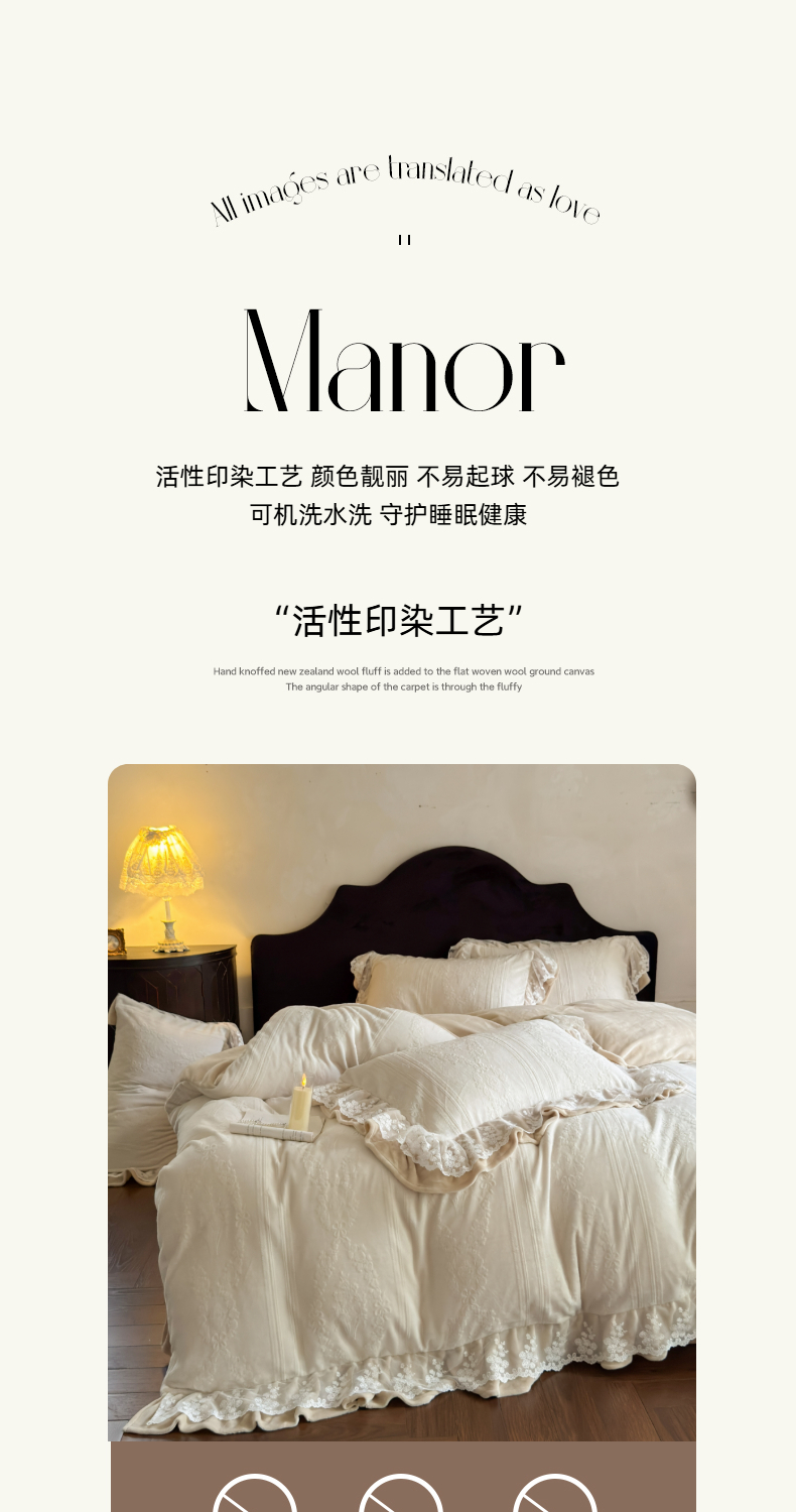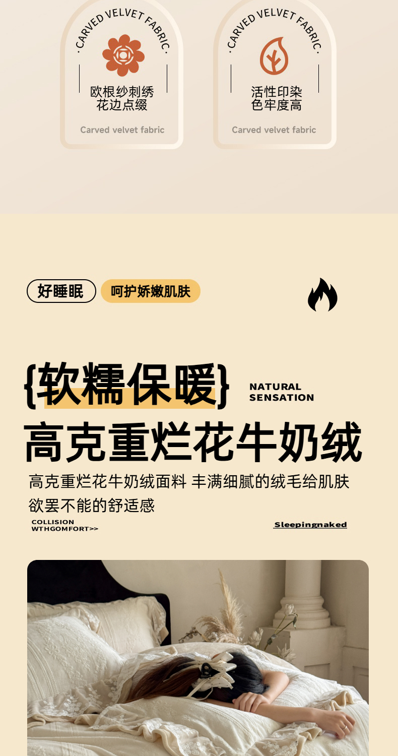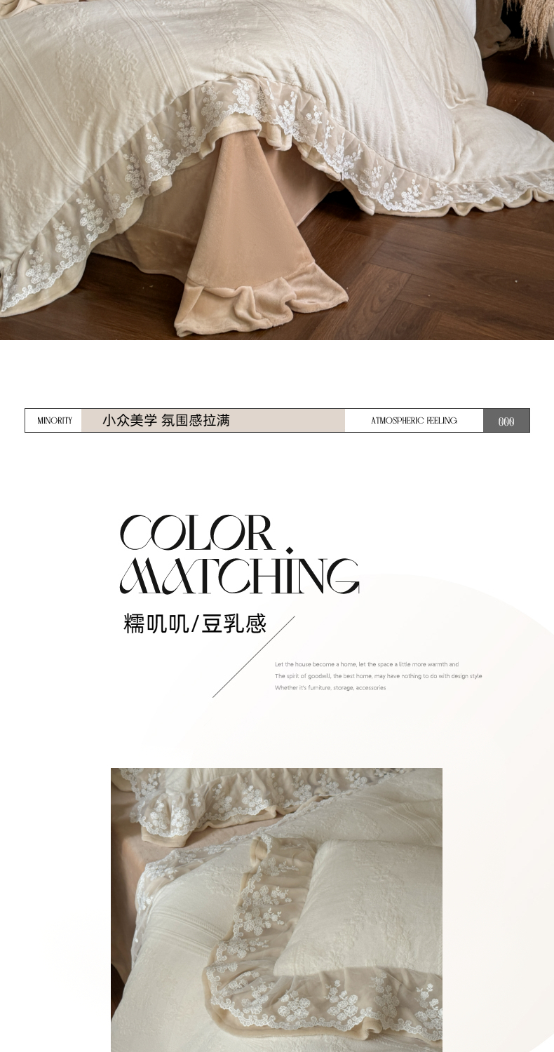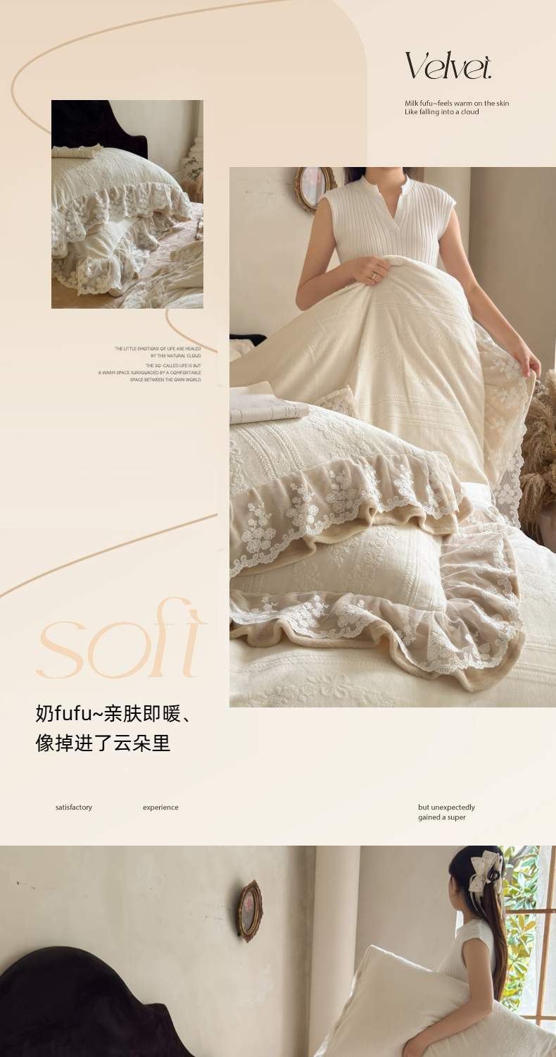 (总)纯优家纺 2025新款秋冬轻法式花边款雕花牛奶绒四件套-绮梦,绮梦-蜜桃粉,绮梦-米黄,绮梦-芋泥紫