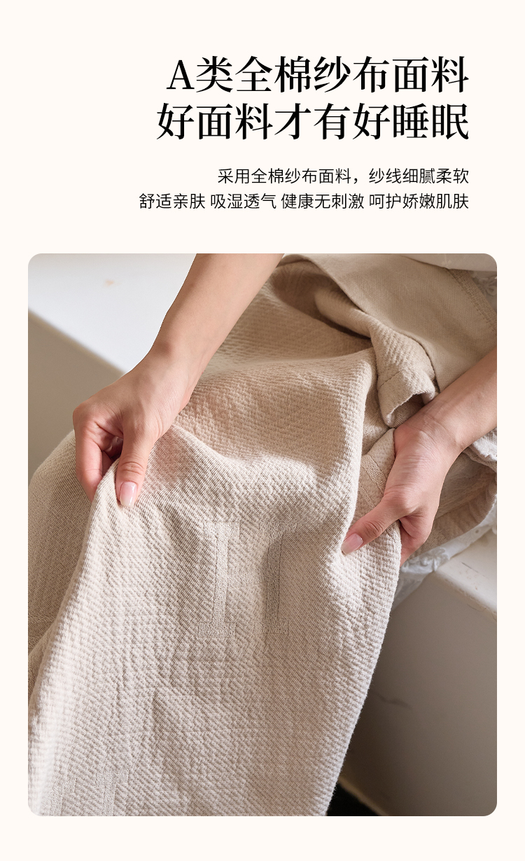 (总)沐瑟家纺 2025新款简约风多功能纱布盖毯纱布毯子毛巾被床盖沙发巾单毯枕巾枕套三件套,H本色,H橙色,H咖色,大马士革本色