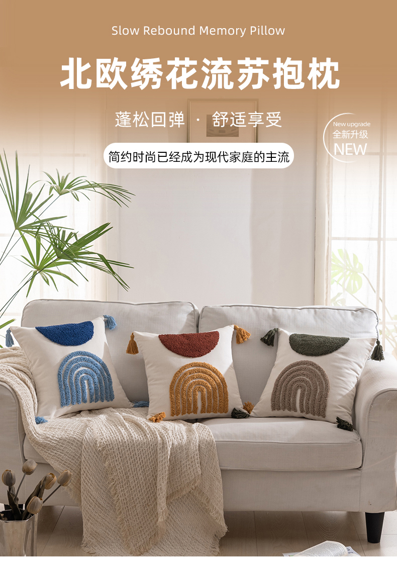 (总)博笔熊家纺 2025新款北欧绣花流苏抱枕,组合图仅供展示不可下单,橘,蓝,绿