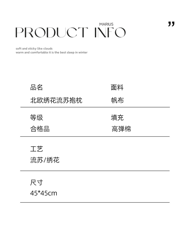 商品名称:博笔熊家纺 2025新款北欧绣花流苏抱枕 蓝