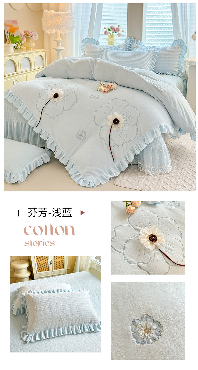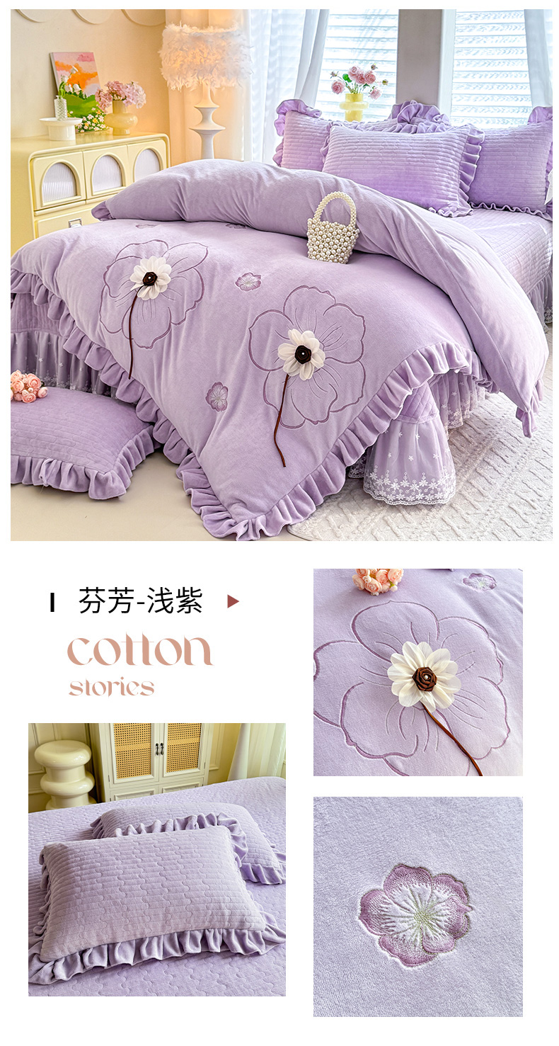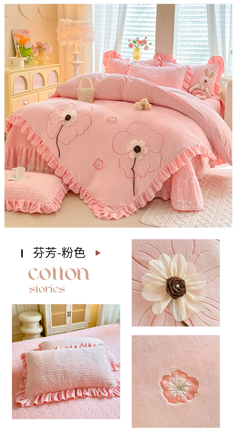 (总)唐人居 2025新款高克重牛奶绒立体绣花床盖四件套-芬芳,芬芳-浅紫,芬芳-草绿,芬芳-豆沙,芬芳-粉色,芬芳-暖橘,芬芳-浅蓝