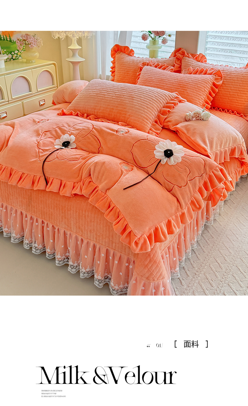 (总)唐人居 2025新款加厚牛奶绒立体绣花四件套-花漾,花漾-暖橘,花漾-草绿,花漾-豆沙,花漾-粉色,花漾-浅蓝,花漾-浅紫