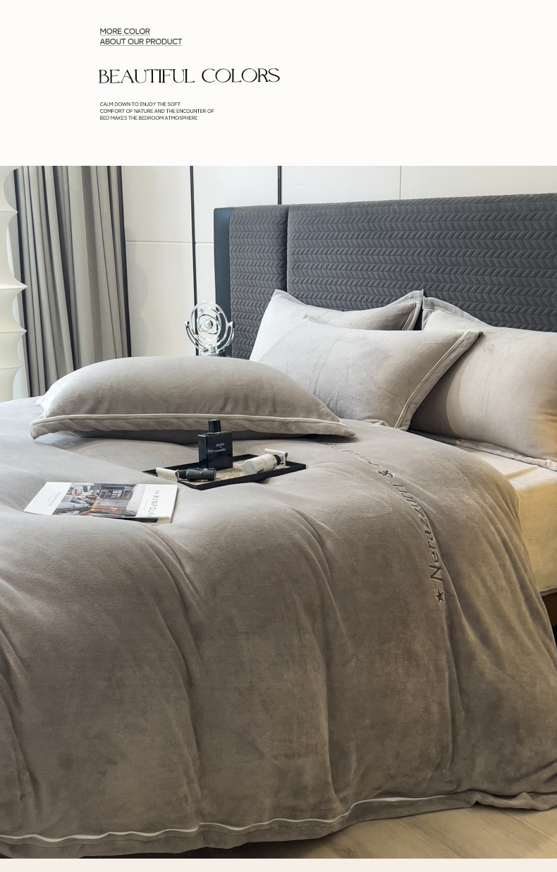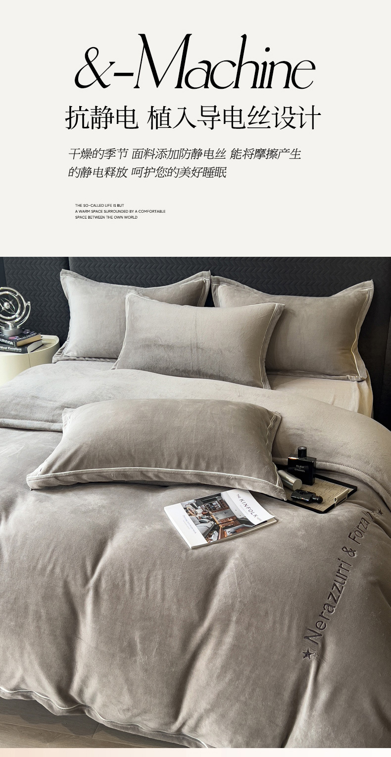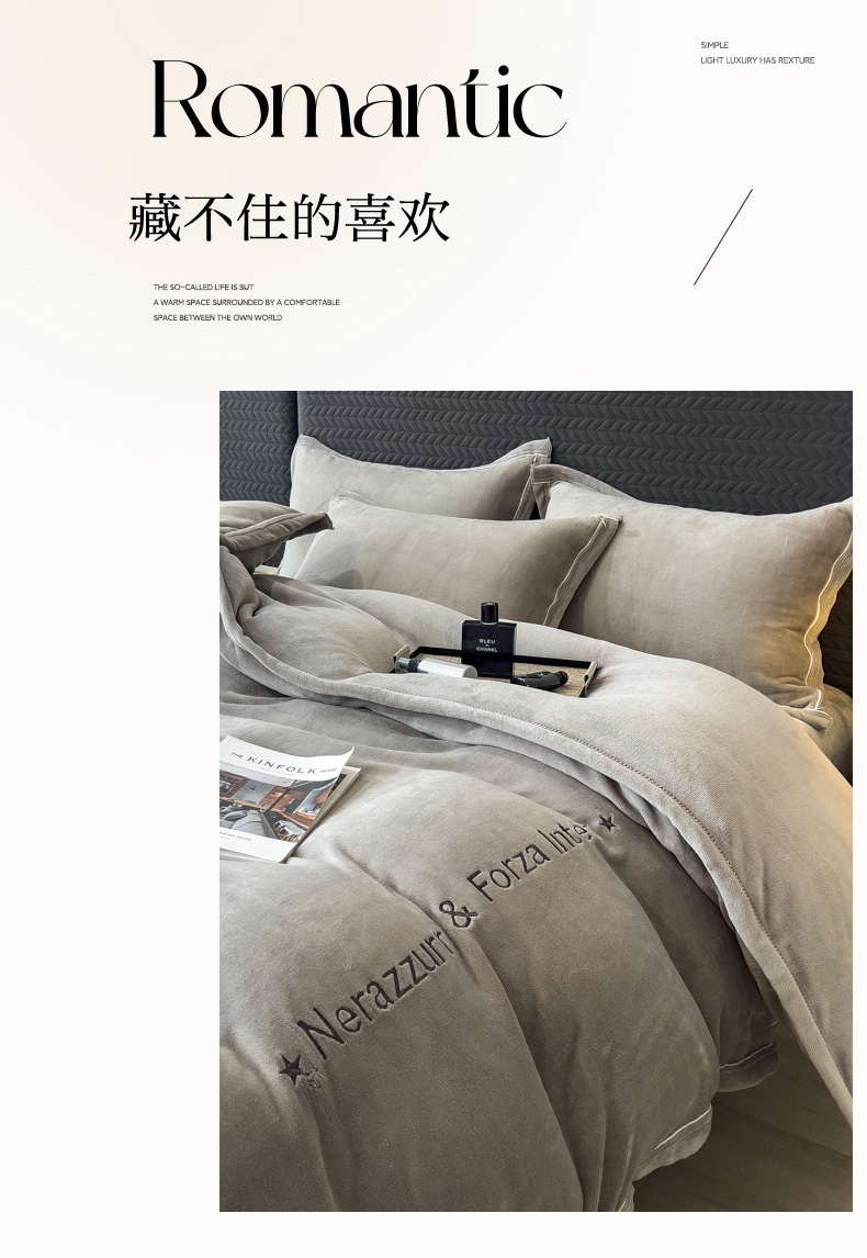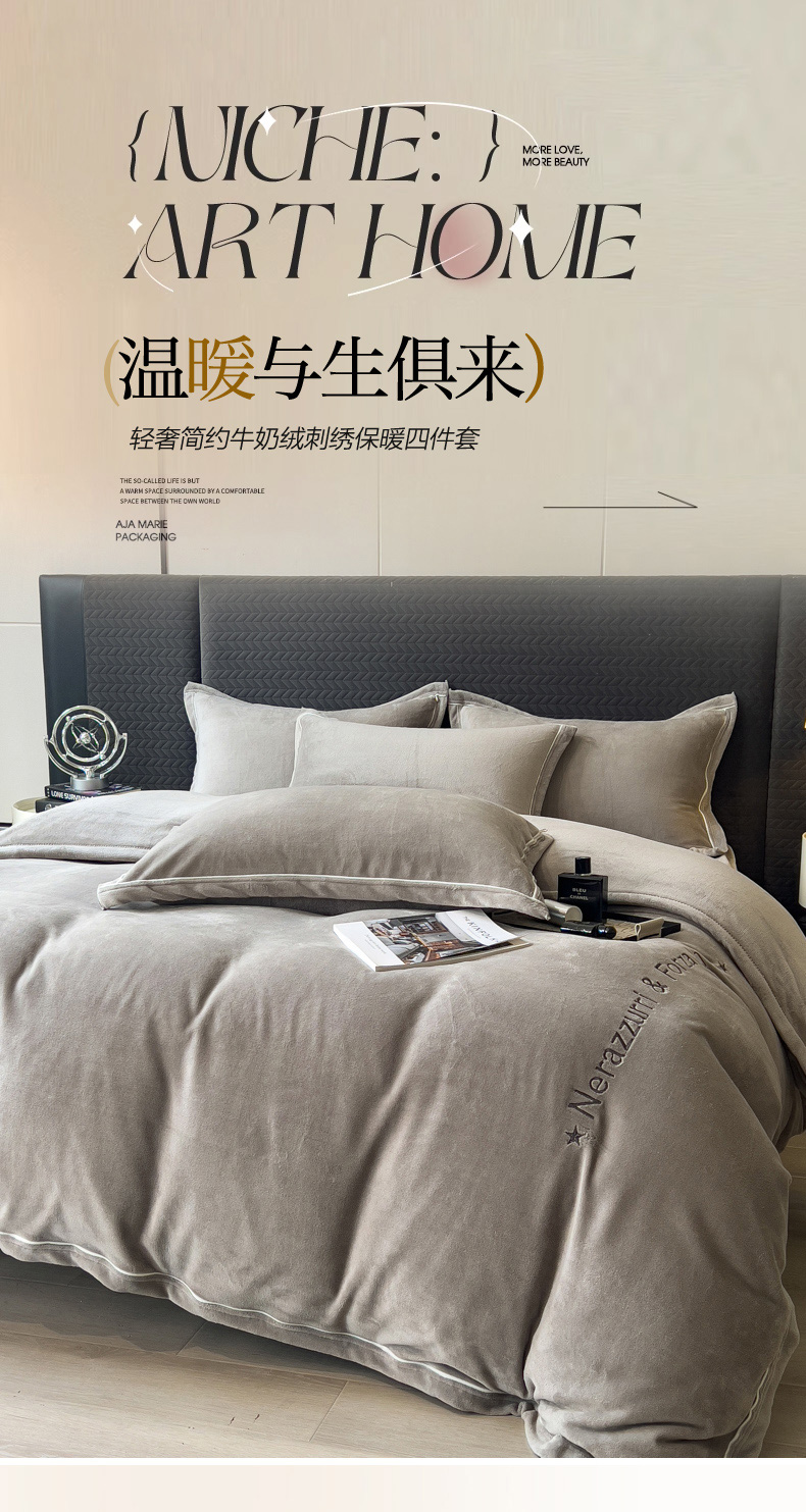 当前位置: 91家纺网 > 商品网购 > 床品套件 > 四件套 > 牛奶绒四件套 > 印季家纺 2025新款牛奶绒两星绣花包边四件套 马丁灰