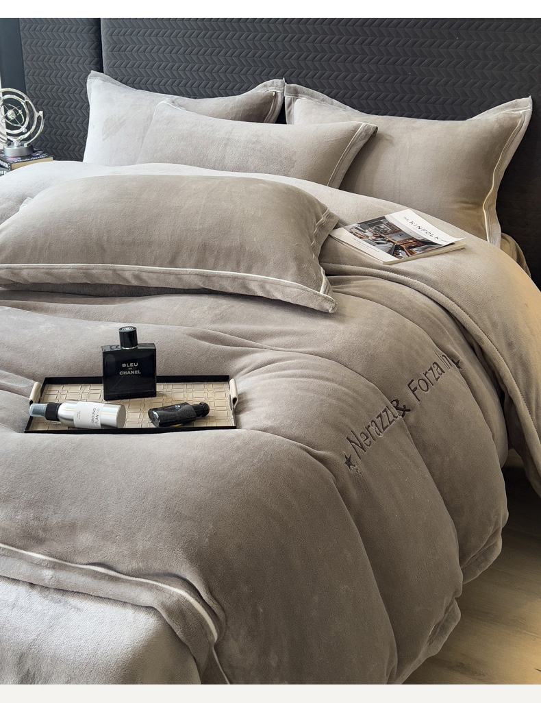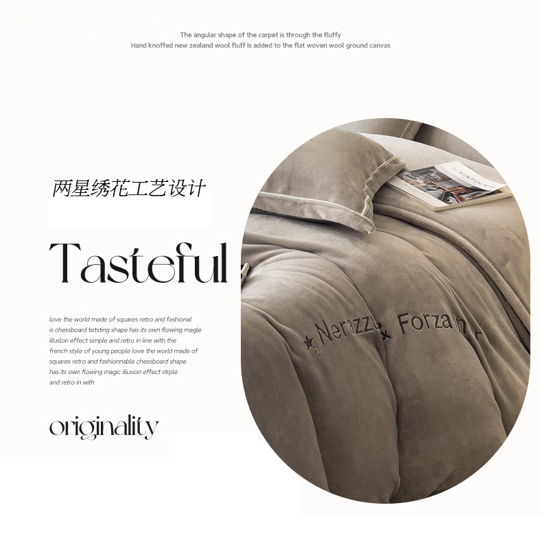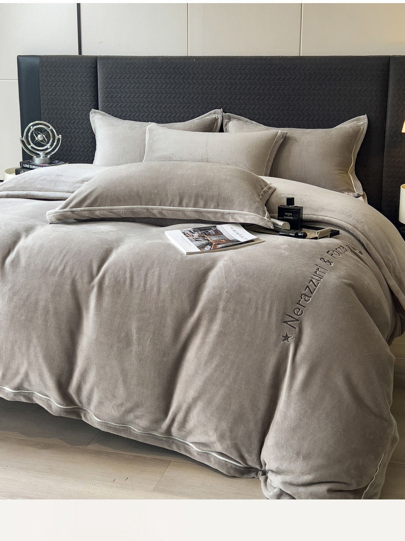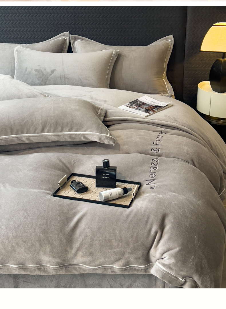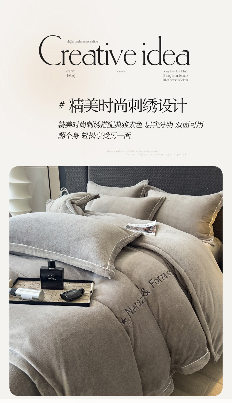 当前位置: 91家纺网 > 商品网购 > 床品套件 > 四件套 > 牛奶绒四件套 > 印季家纺 2025新款牛奶绒两星绣花包边四件套 马丁灰