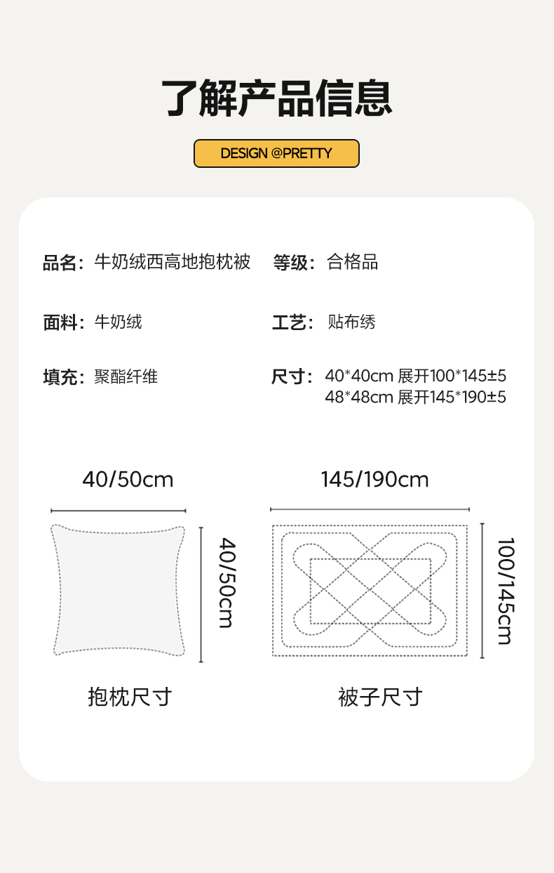 抱枕50x50cm打开被子145x190cm