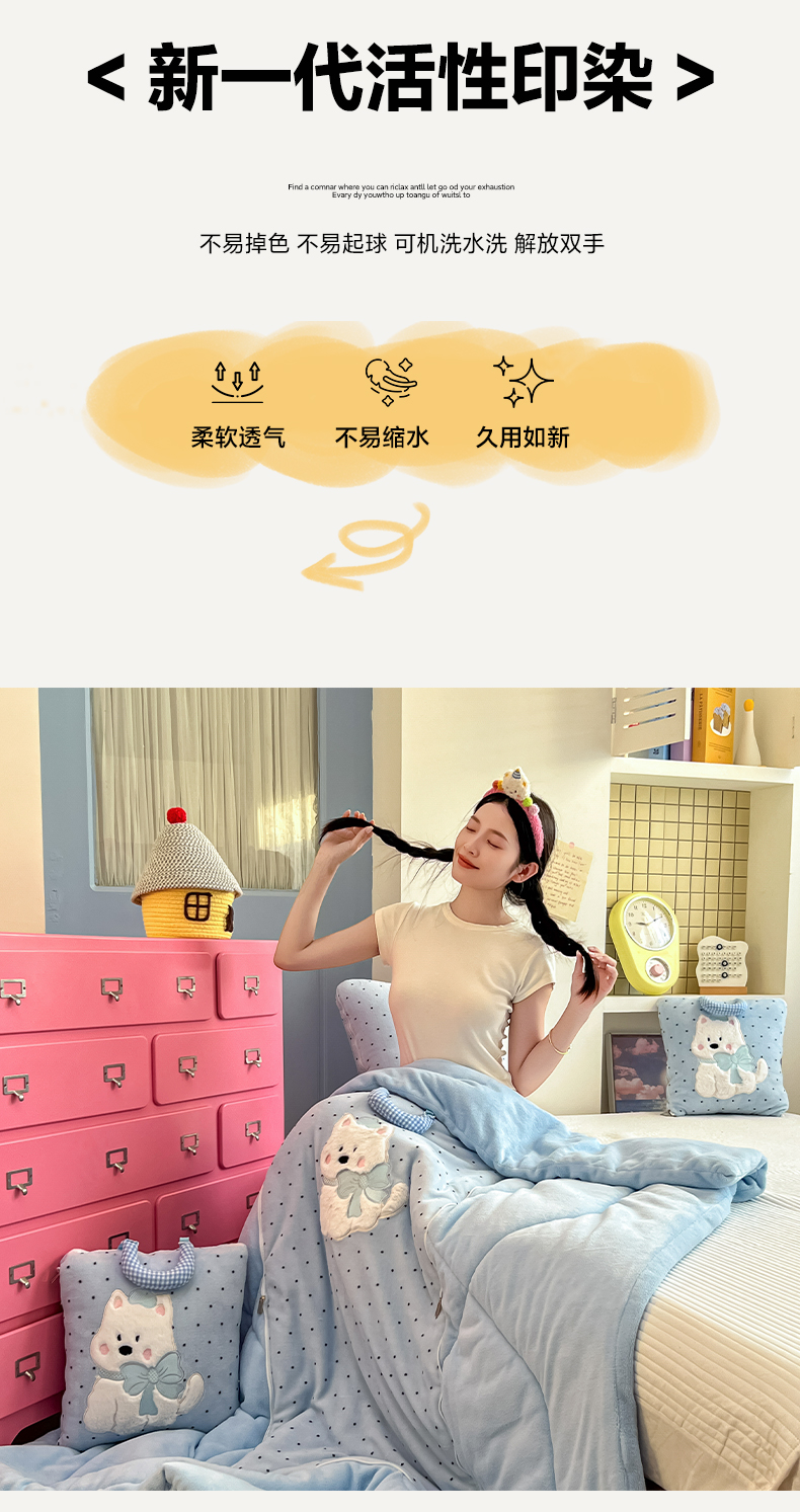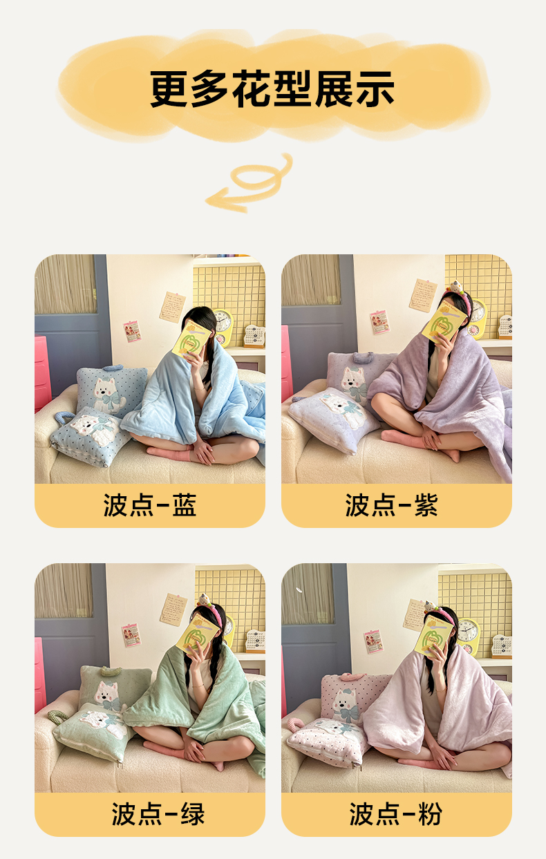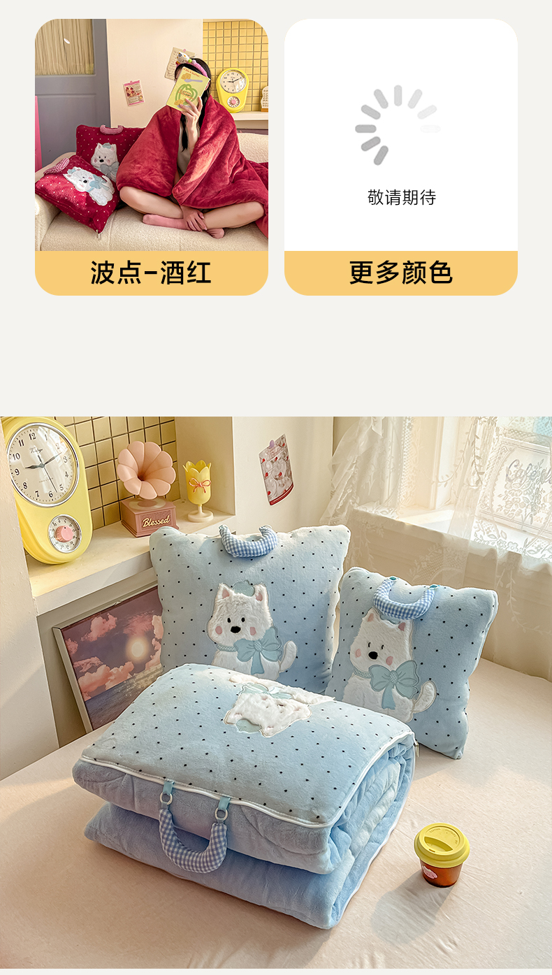 (总)番茄+ 2025新款牛奶绒贴布绣西高地抱枕被,组合图仅供展示不可下单,波点-粉,波点-酒红,波点-蓝,波点-绿,波点-紫