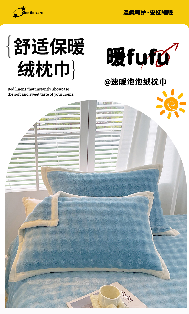 雨彤家纺 2025新款泡泡牛奶绒单人枕巾 牛奶绒枕巾-天空蓝 50*80cm(一对)