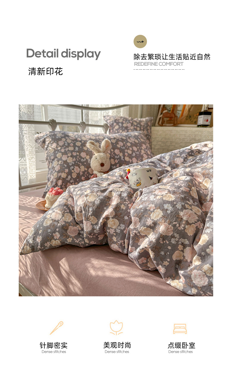 当前位置: 91家纺网 > 商品网购 > 床品套件 > 四件套 > 水洗棉四件套 > 暖芯优选 2025新款加厚爆款小布袋韩国古法水洗棉床单学生三件套床笠款四件套 花漾