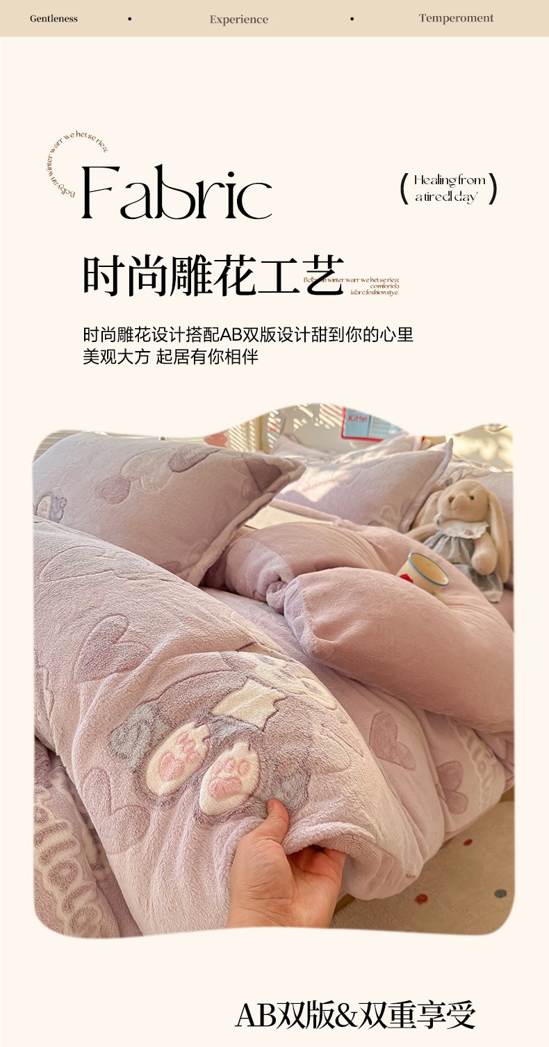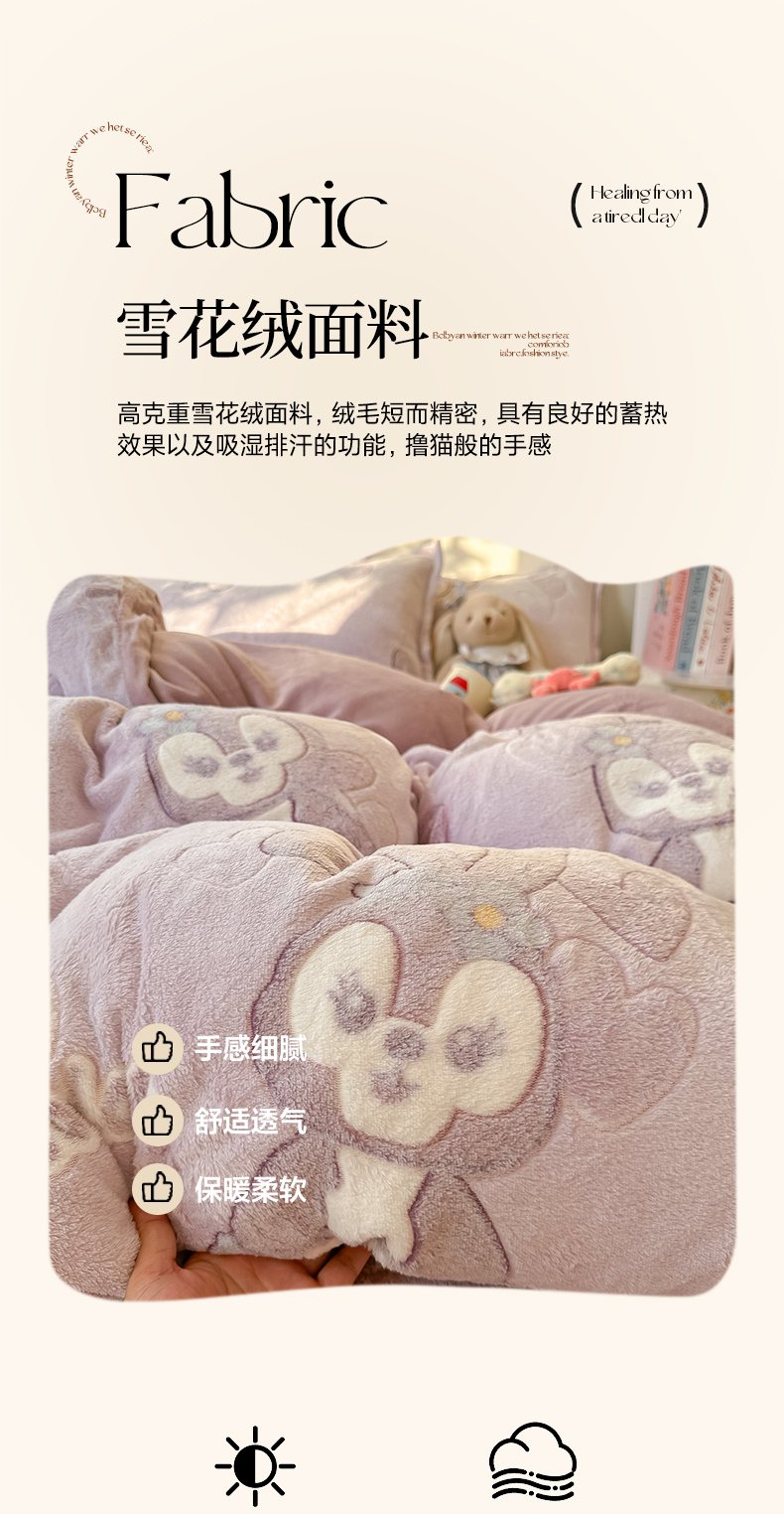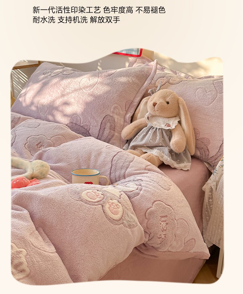 当前位置: 91家纺网 > 商品网购 > 床品套件 > 四件套 > 牛奶绒四件套 > 韩巢家纺 2025新款高克重雪花绒牛奶绒四件套系列 幸运兔