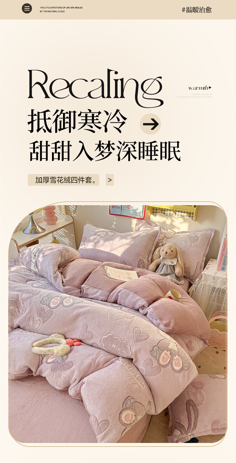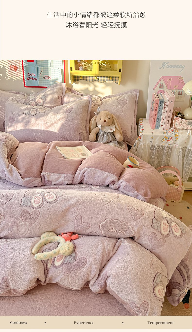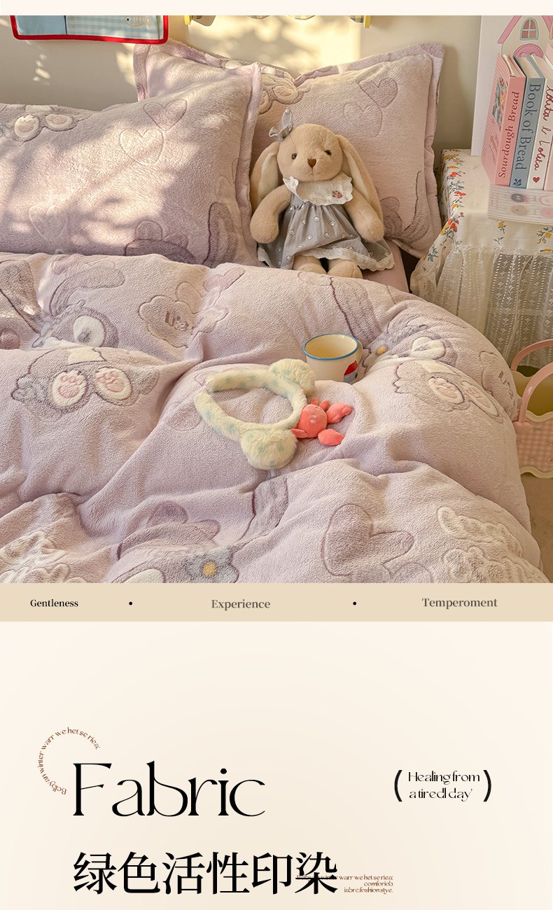 当前位置: 91家纺网 > 商品网购 > 床品套件 > 四件套 > 牛奶绒四件套 > 韩巢家纺 2025新款高克重雪花绒牛奶绒四件套系列 幸运兔