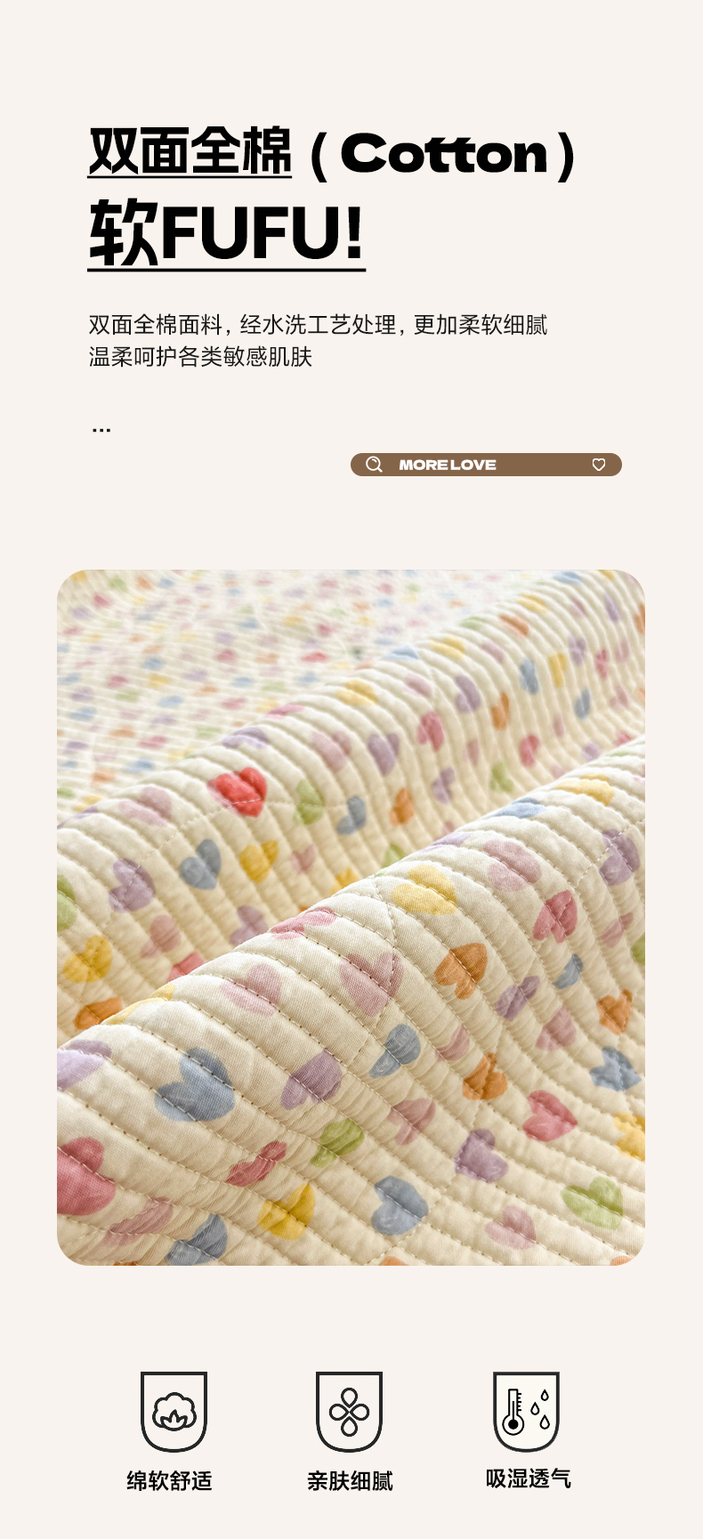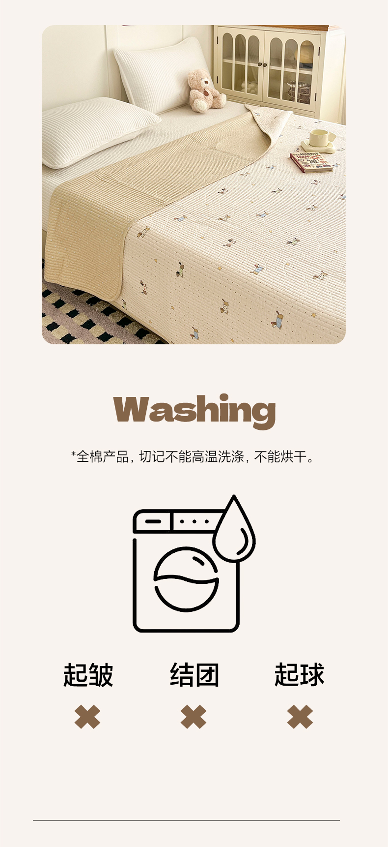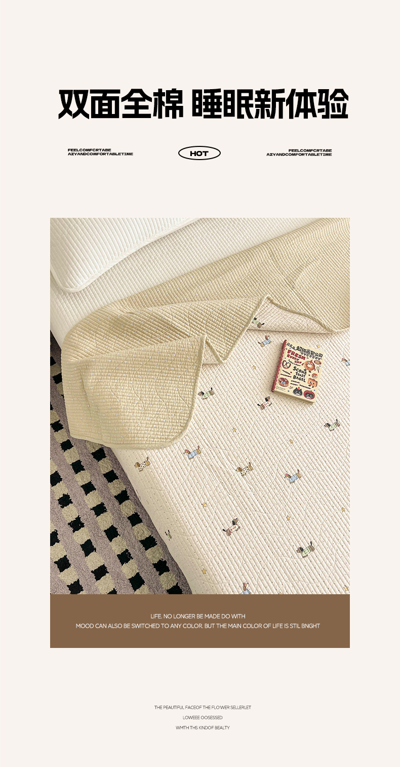 商品名称:沐纯家居 2025新款跑量款双面纯棉 棉花填充水洗床盖 小萌人