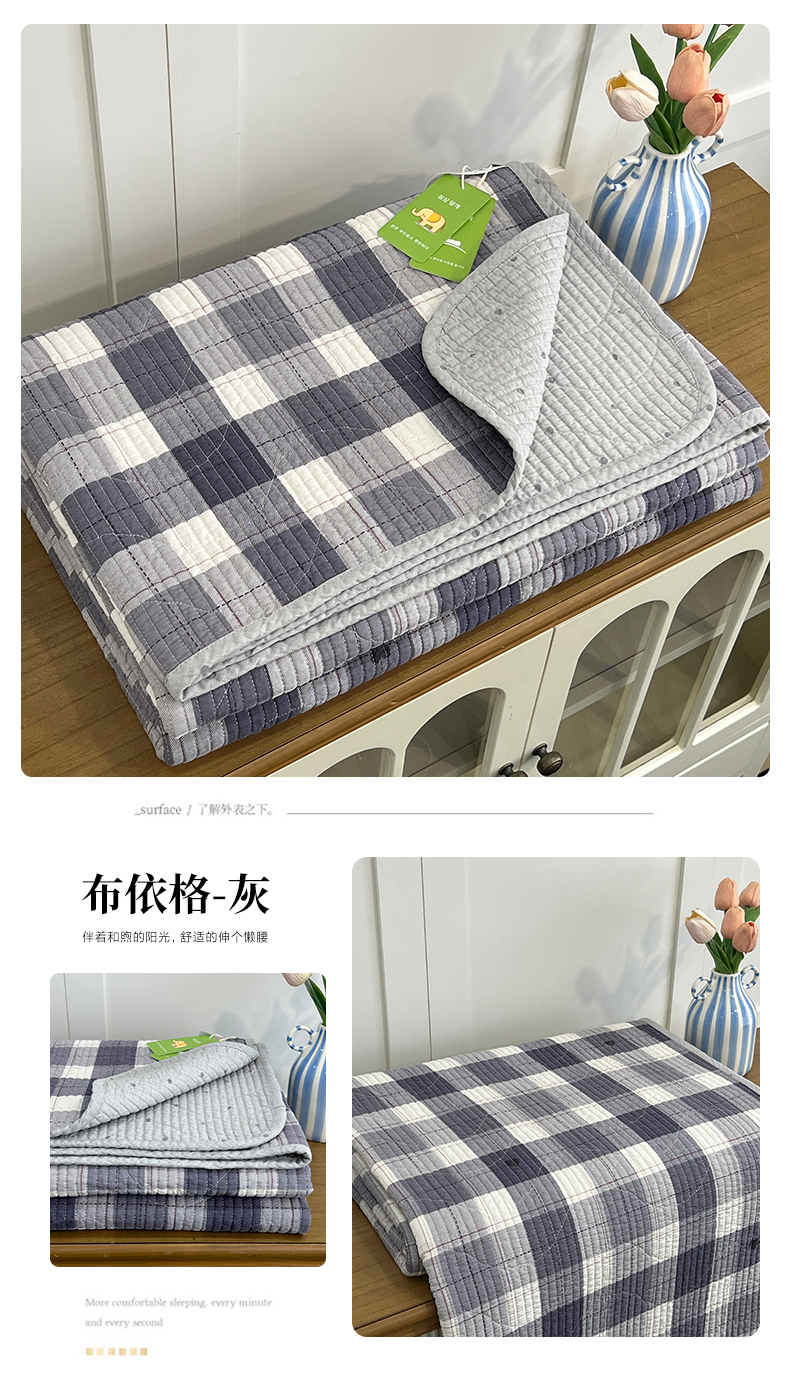 沐纯家居 2025新款婴儿绒纯棉水洗床盖月光格-灰,月光格-灰