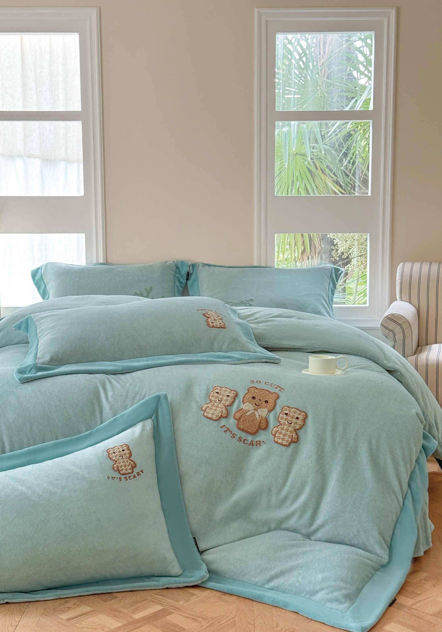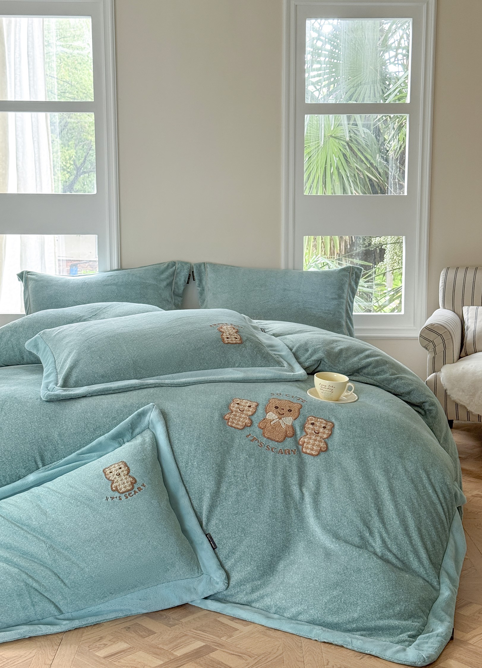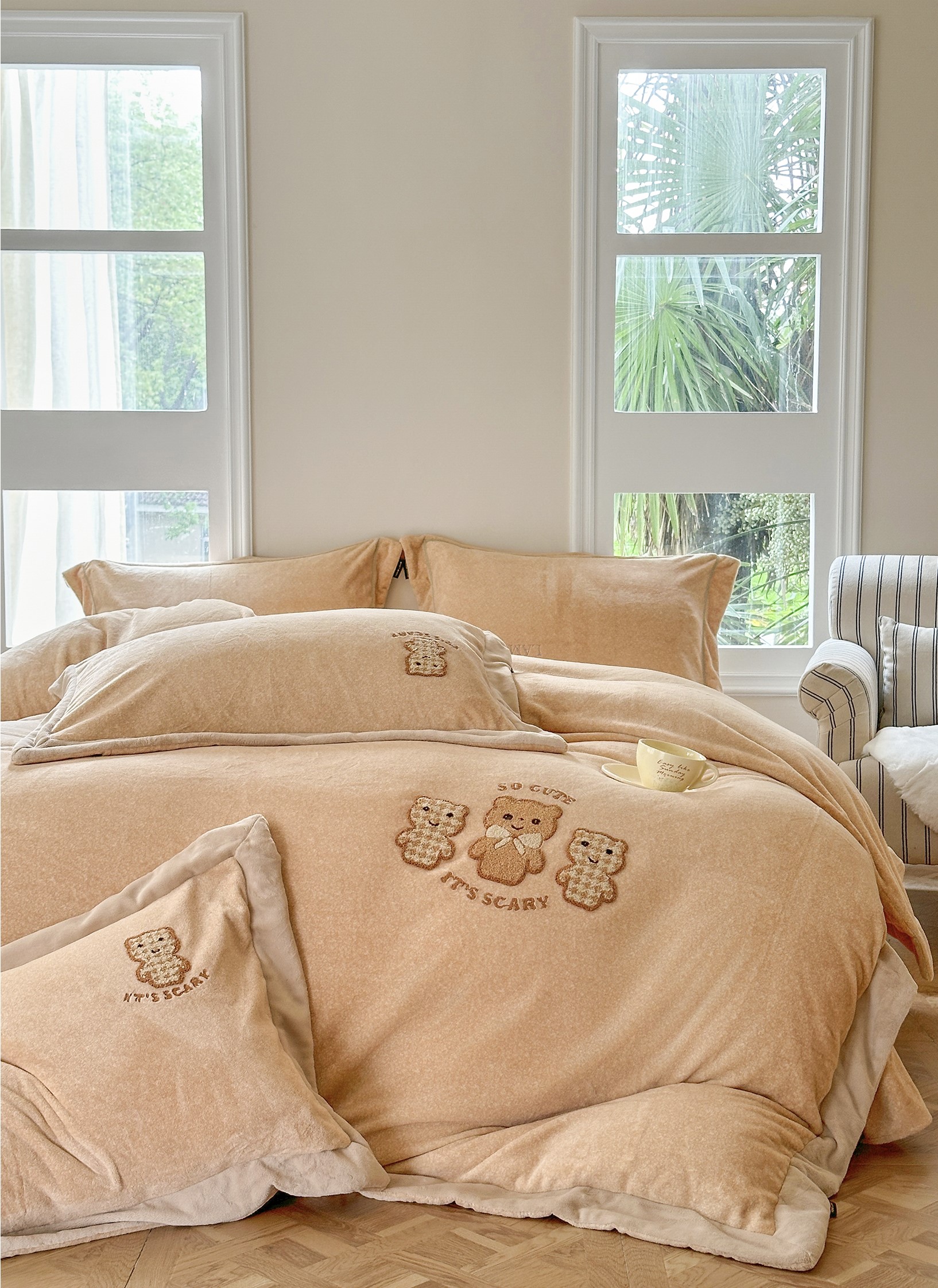 (总)芯丝路枕业 2025新款肌理纹蚕丝绒四件套-快乐熊