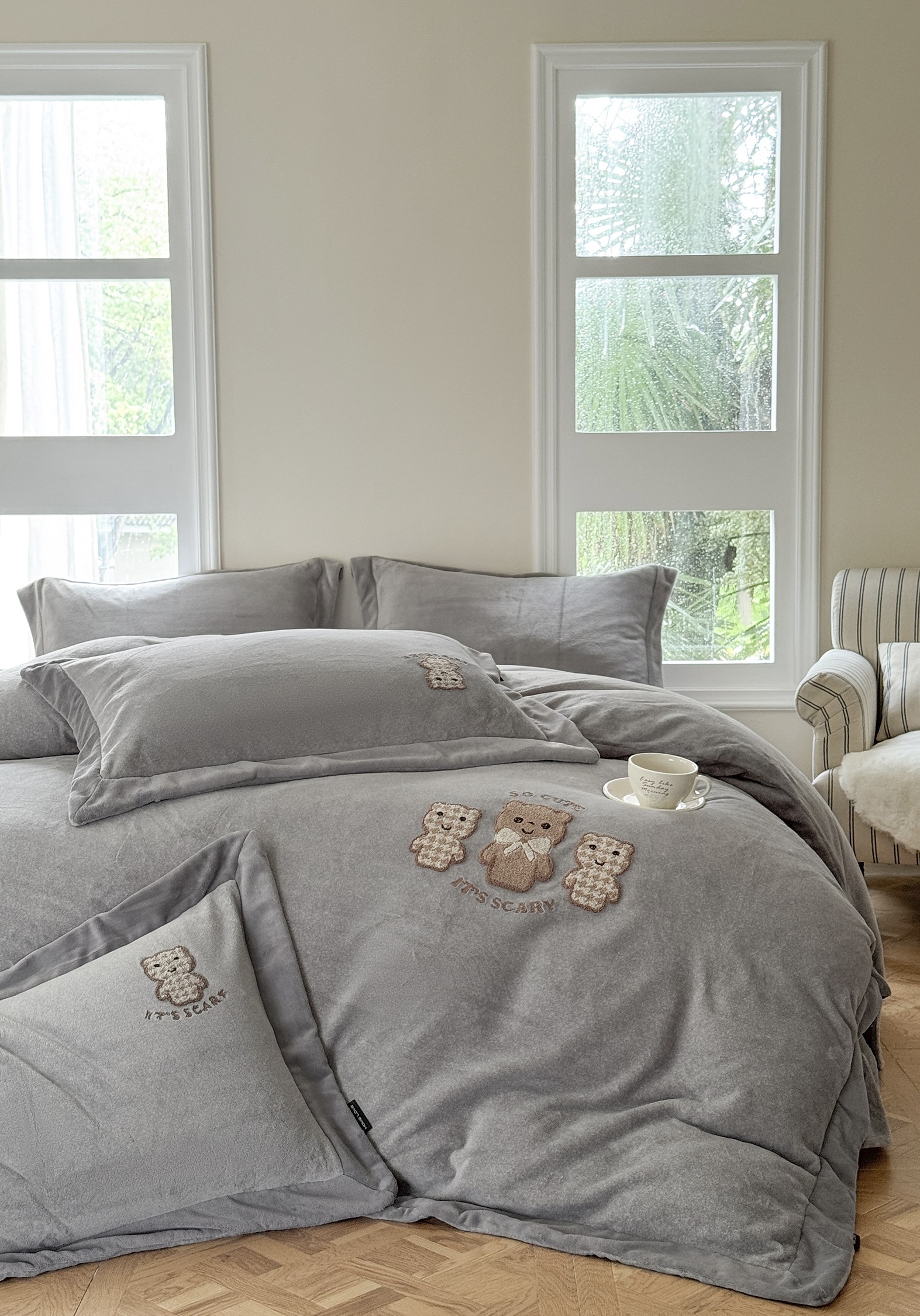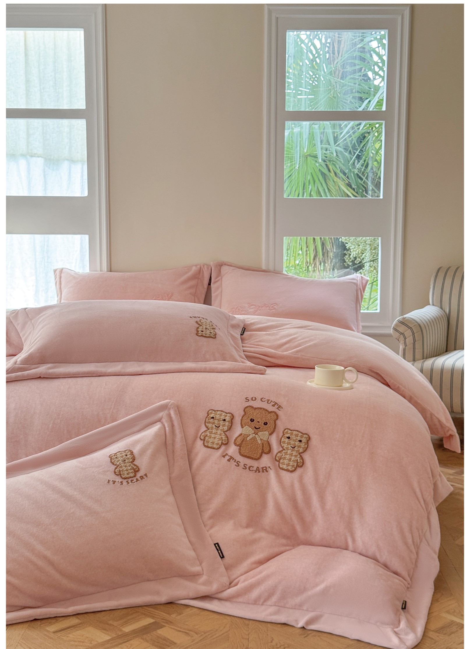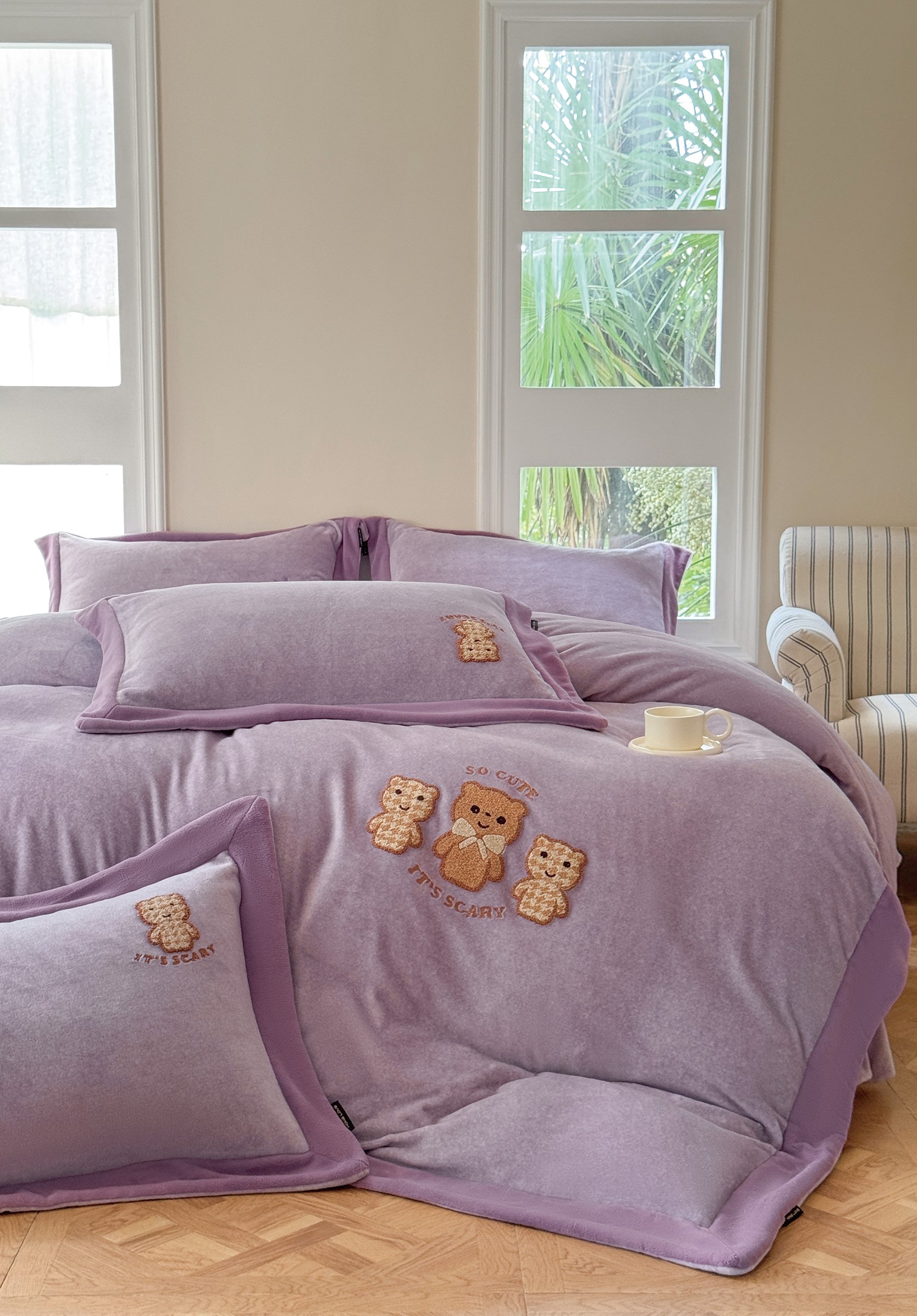 (总)芯丝路枕业 2025新款肌理纹蚕丝绒四件套-快乐熊