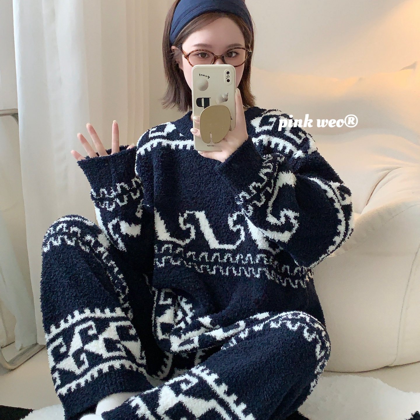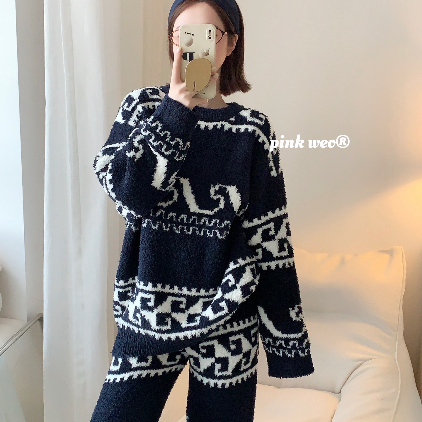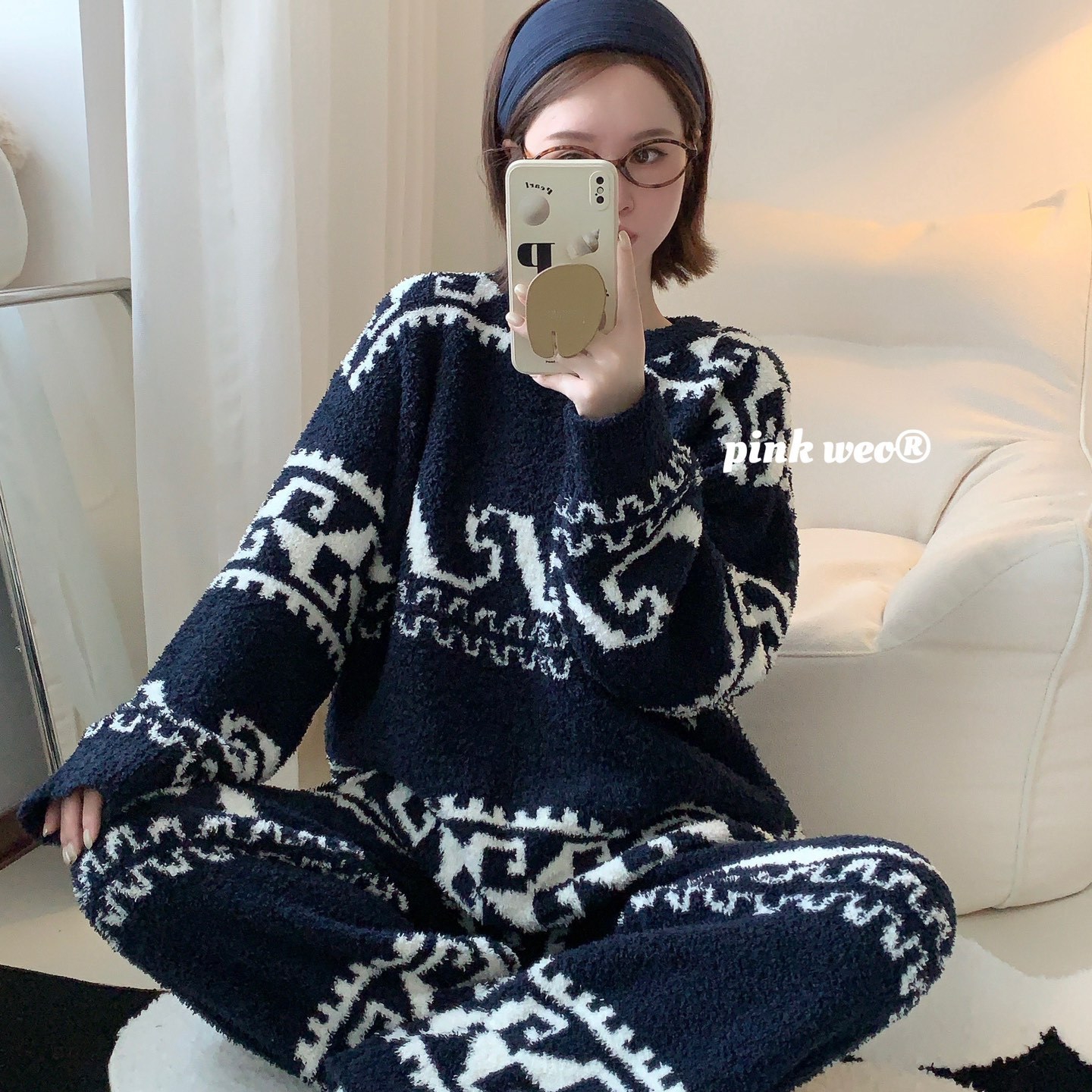 当前位置: 91家纺网 > 商品网购 > 居家日用 > 睡衣/家居服套装 > (总)妍景家居生活馆 2025新款半边绒-撞色提花家居服