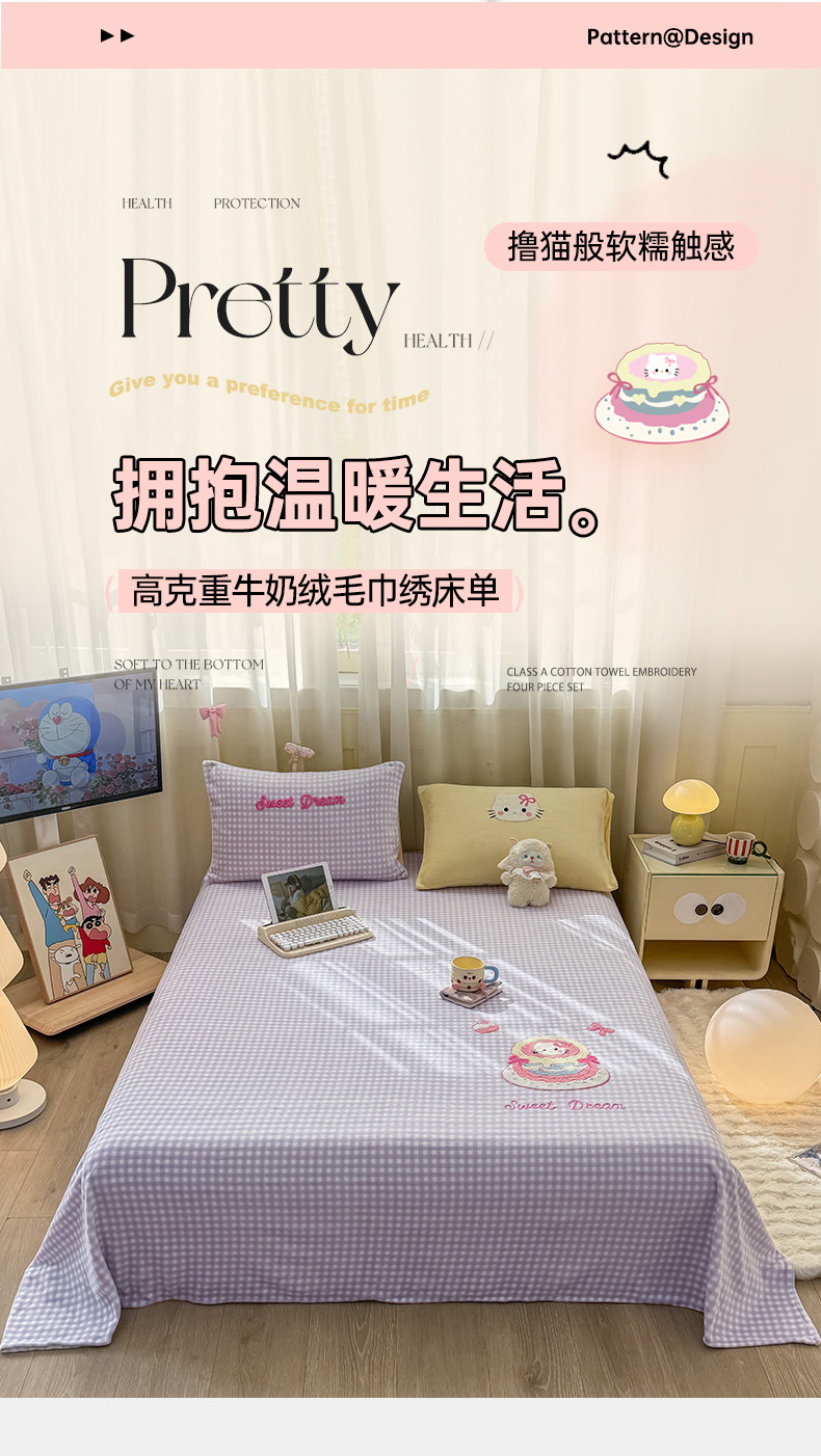 当前位置: 91家纺网 > 商品网购 > 床上用品 > 床单 > 灰鲸 2025新款高克重牛奶绒毛巾绣单床单 紫格蛋糕喵