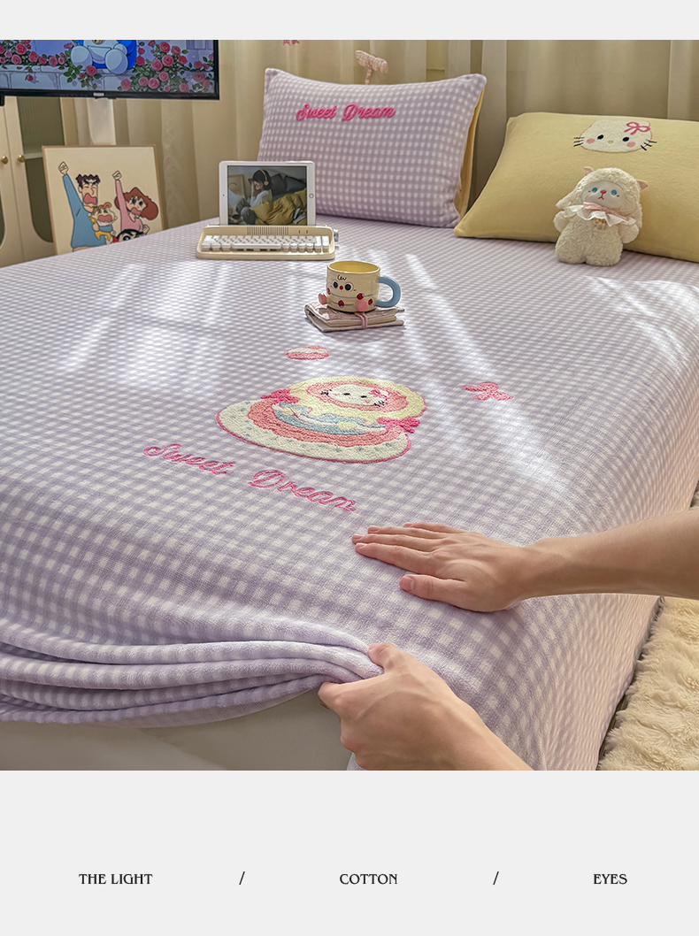 (总)灰鲸 2025新款高克重牛奶绒毛巾绣床笠单床笠单品床笠床笠单件,蓝格苹果狗,粉格蛋糕喵,粉格苹果狗,黄格蛋糕喵,黄格苹果狗,蓝格蛋糕喵,紫格蛋糕喵,紫格苹果狗