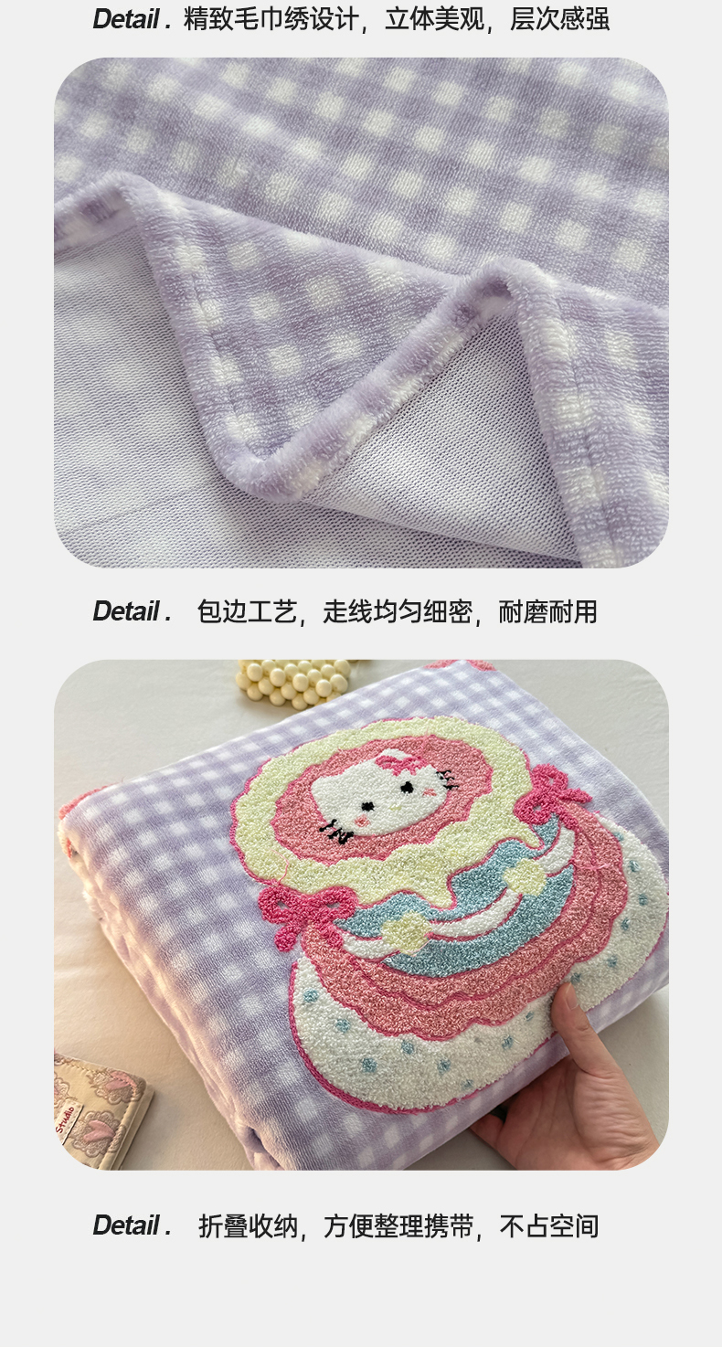 灰鲸 2025新款高克重牛奶绒毛巾绣单床单 紫格蛋糕喵