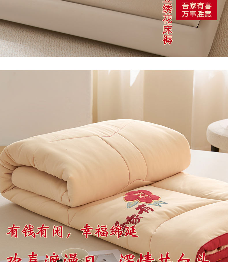 商品名称:玉雅家纺 2025新款立体婚庆绣花大豆床垫床褥加厚垫被 圆圆满满-米