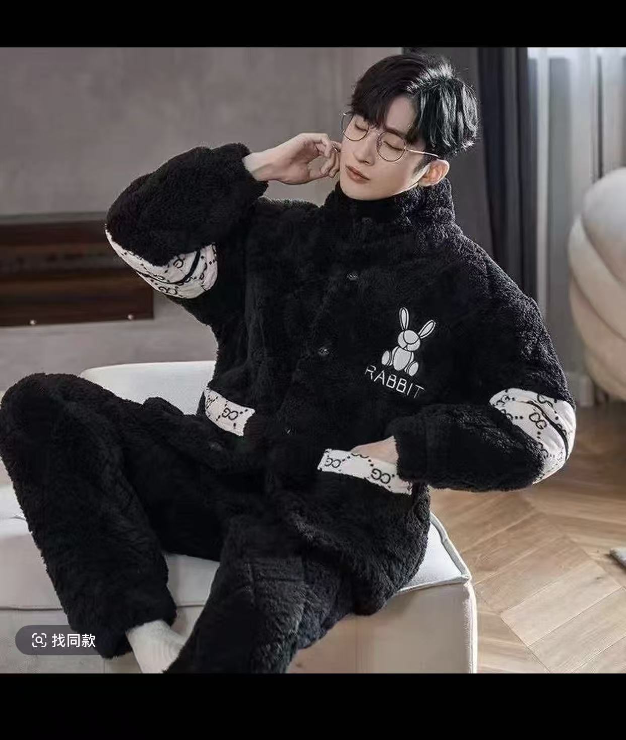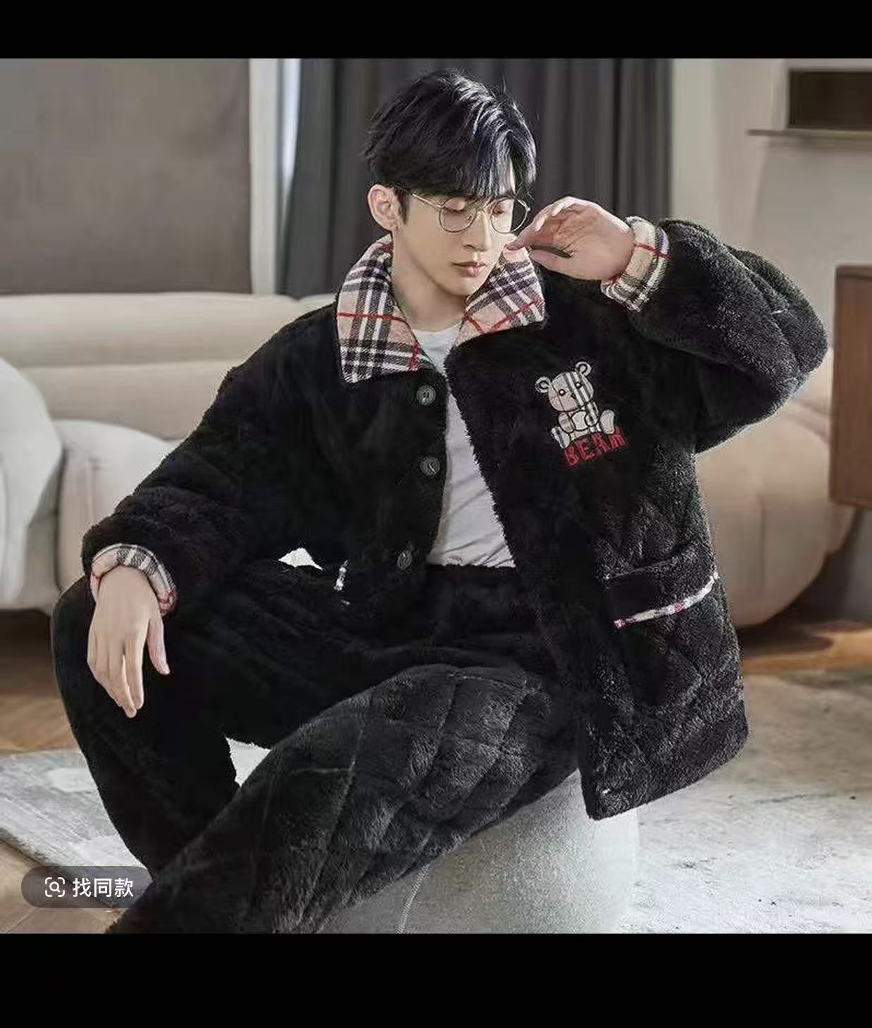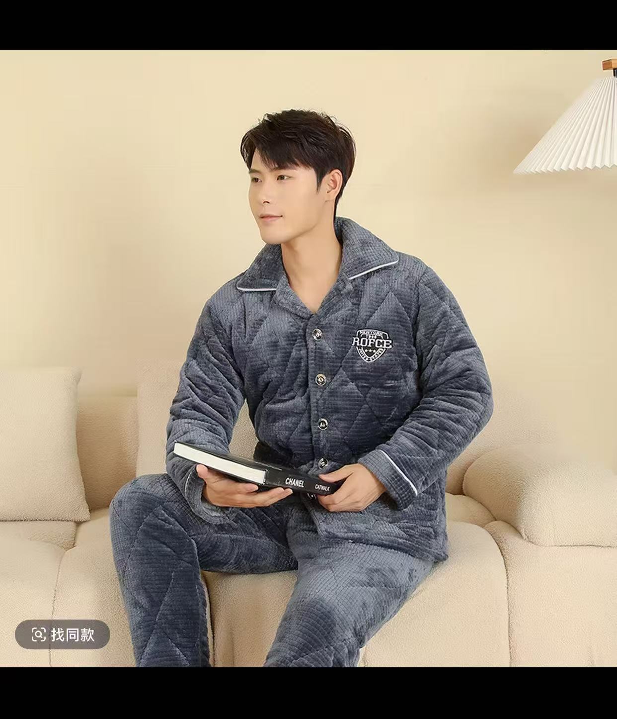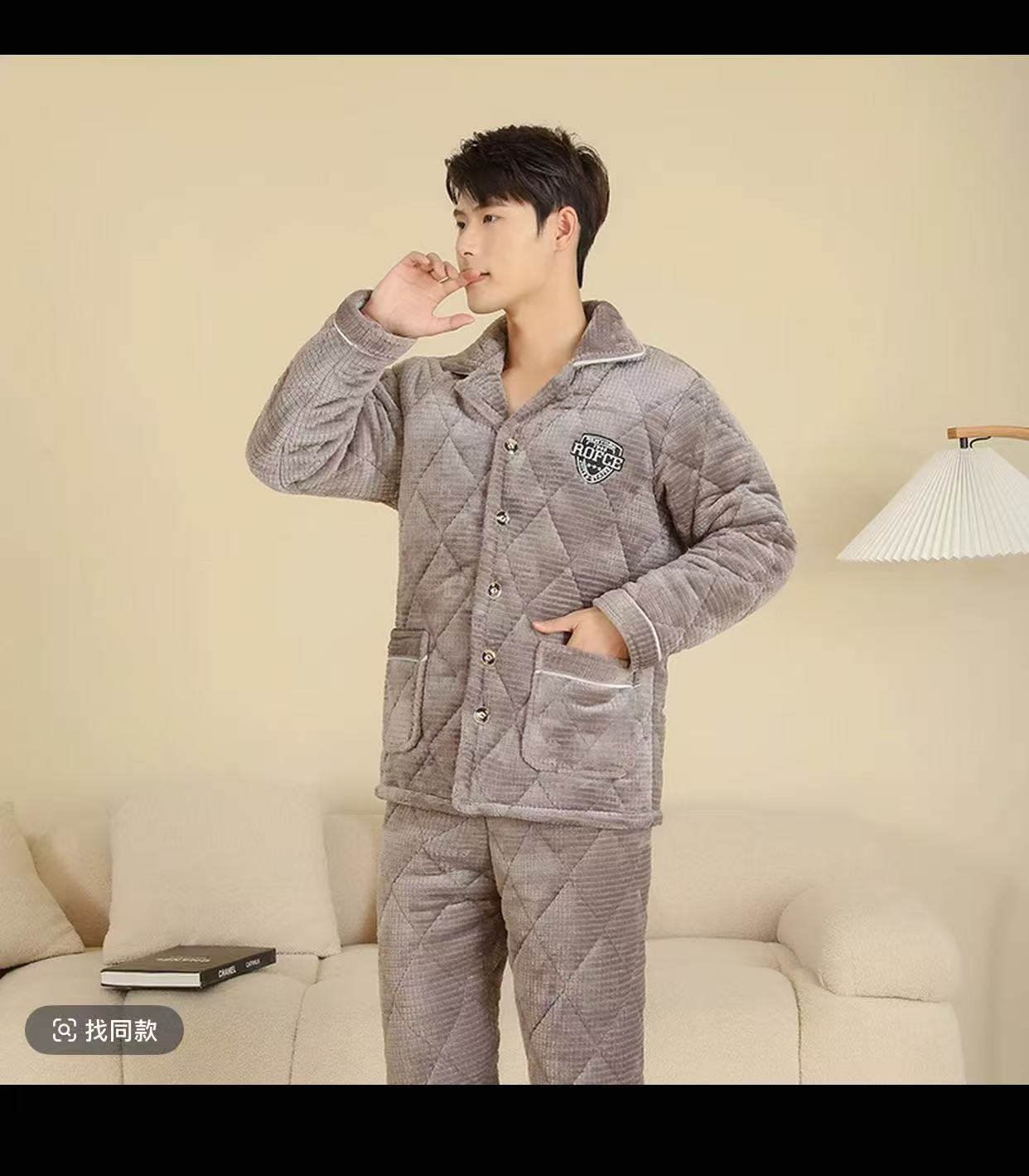 (总)洛兰沙家居馆 2025新款男款三层夹棉保暖加厚冬季法莱绒家居服睡衣