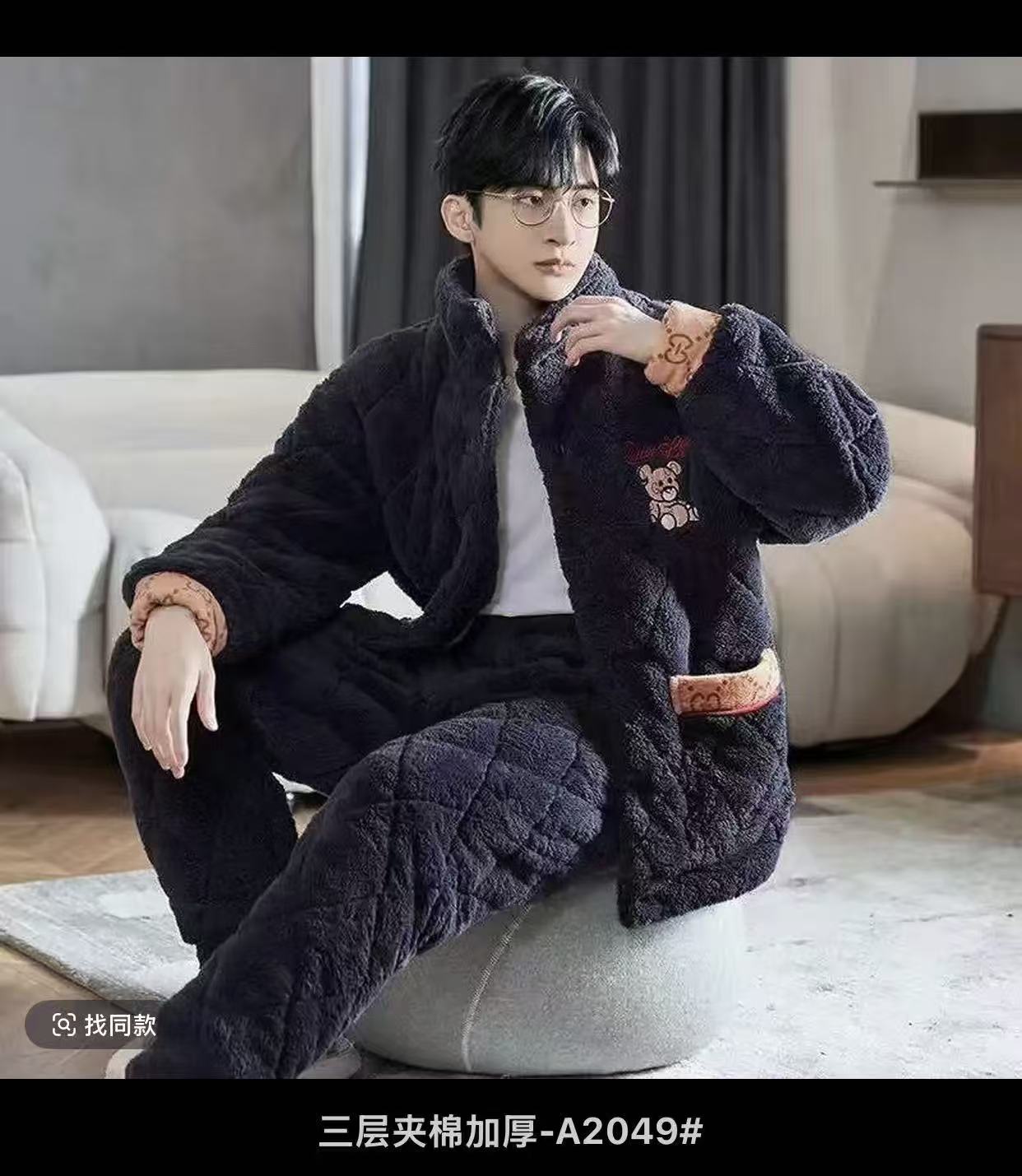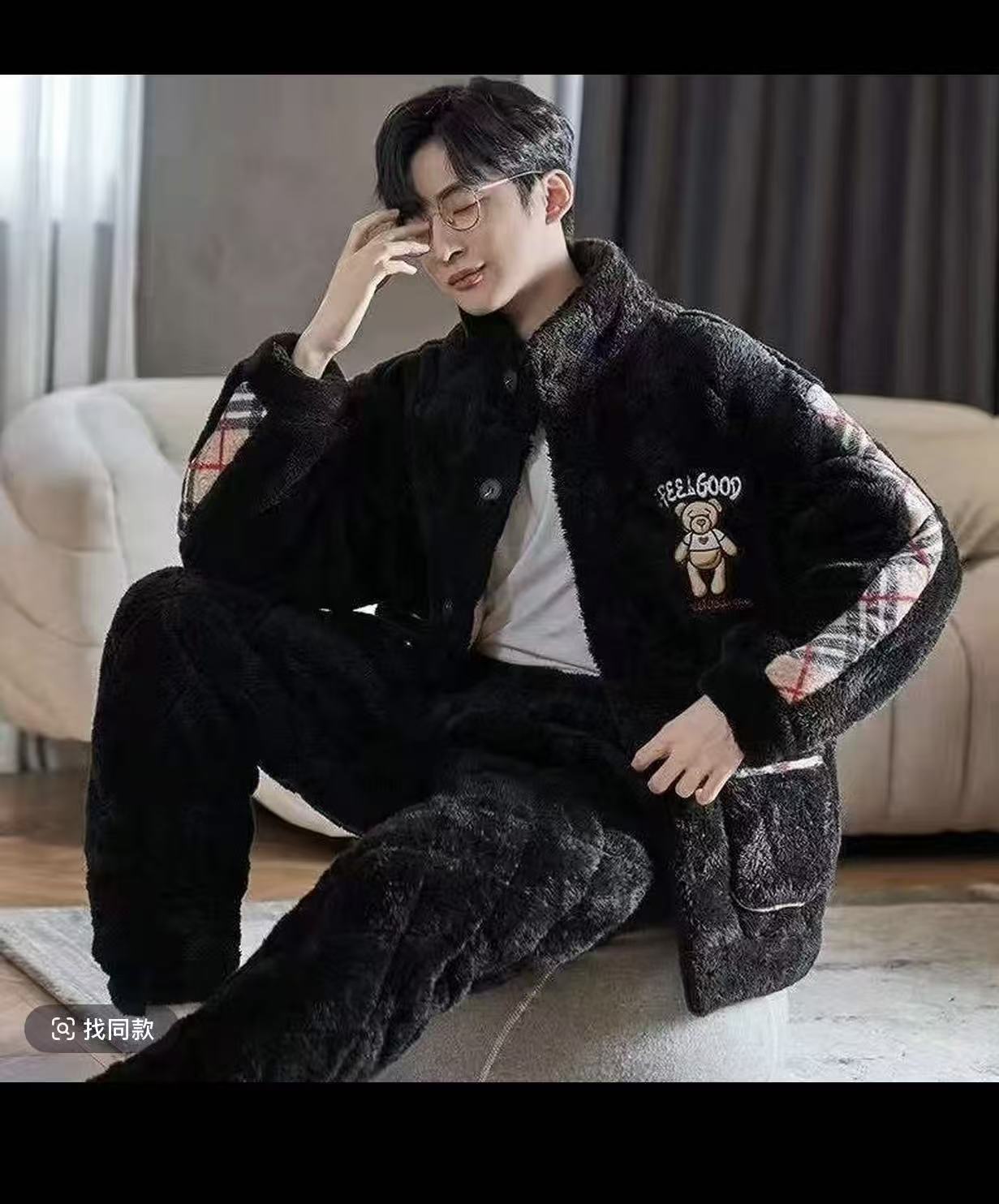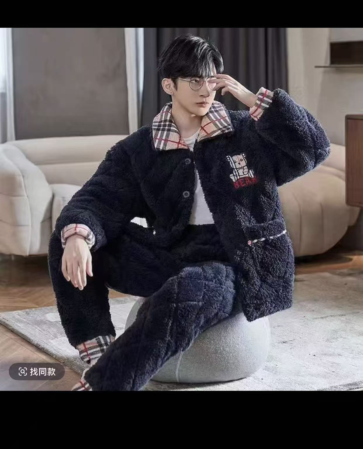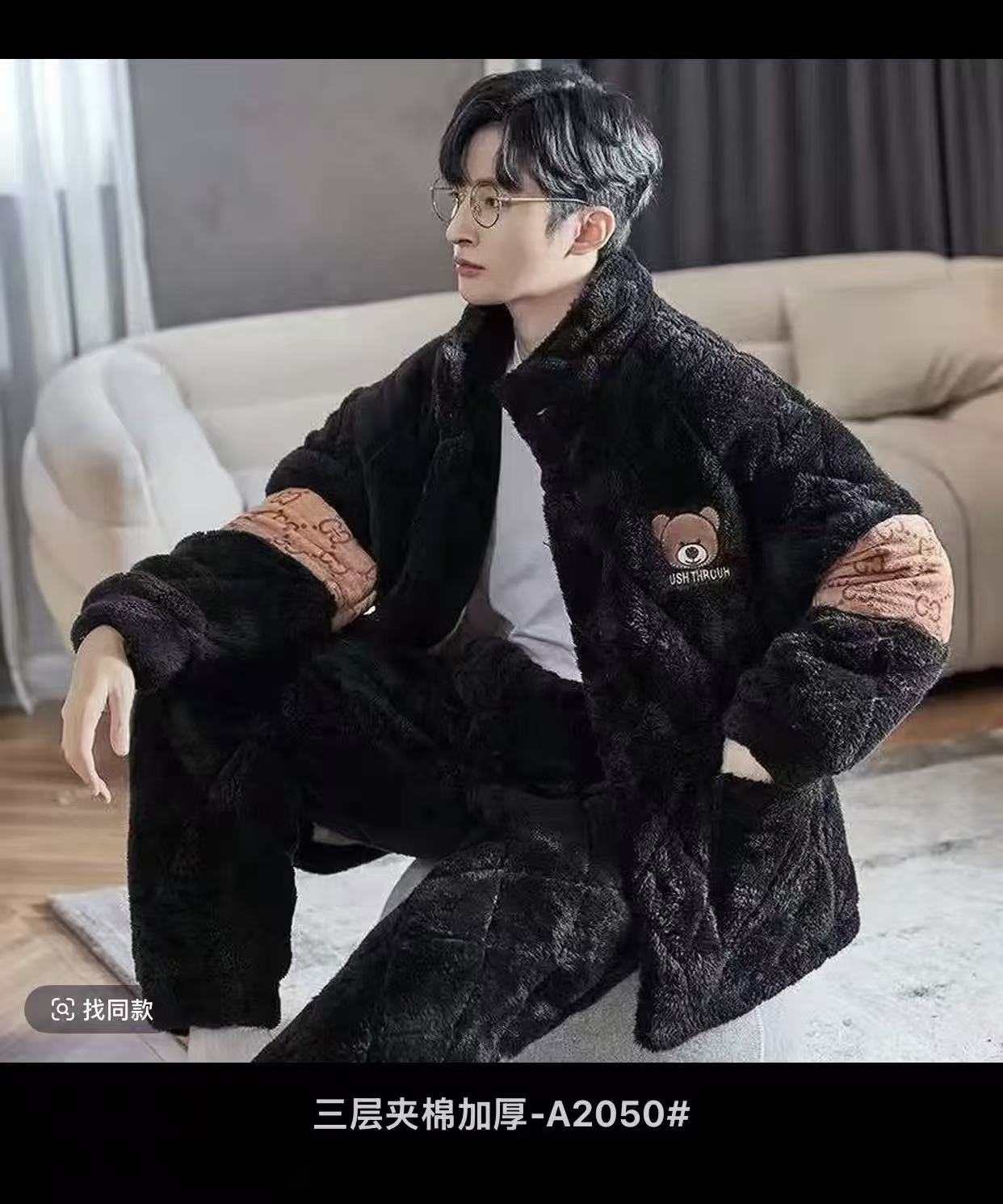 商品名称:(总)洛兰沙家居馆 2025新款男款三层夹棉保暖加厚冬季法莱绒家居服睡衣