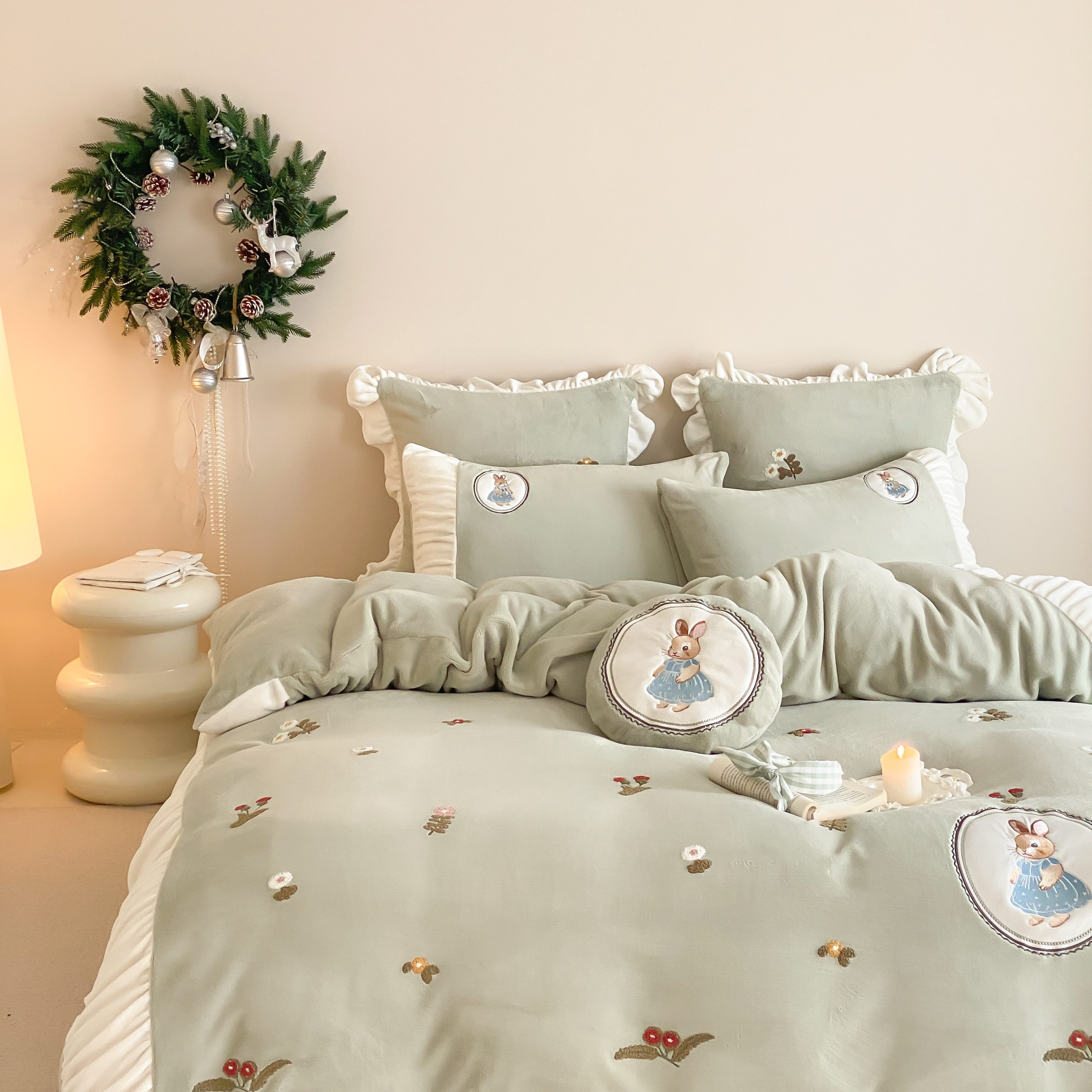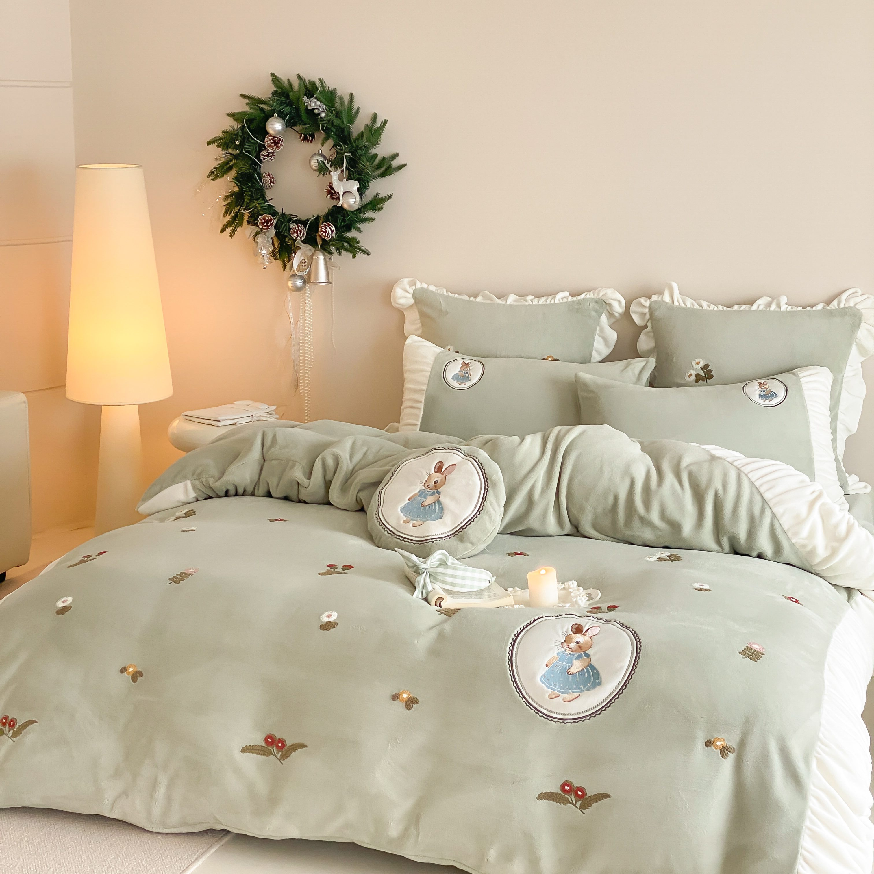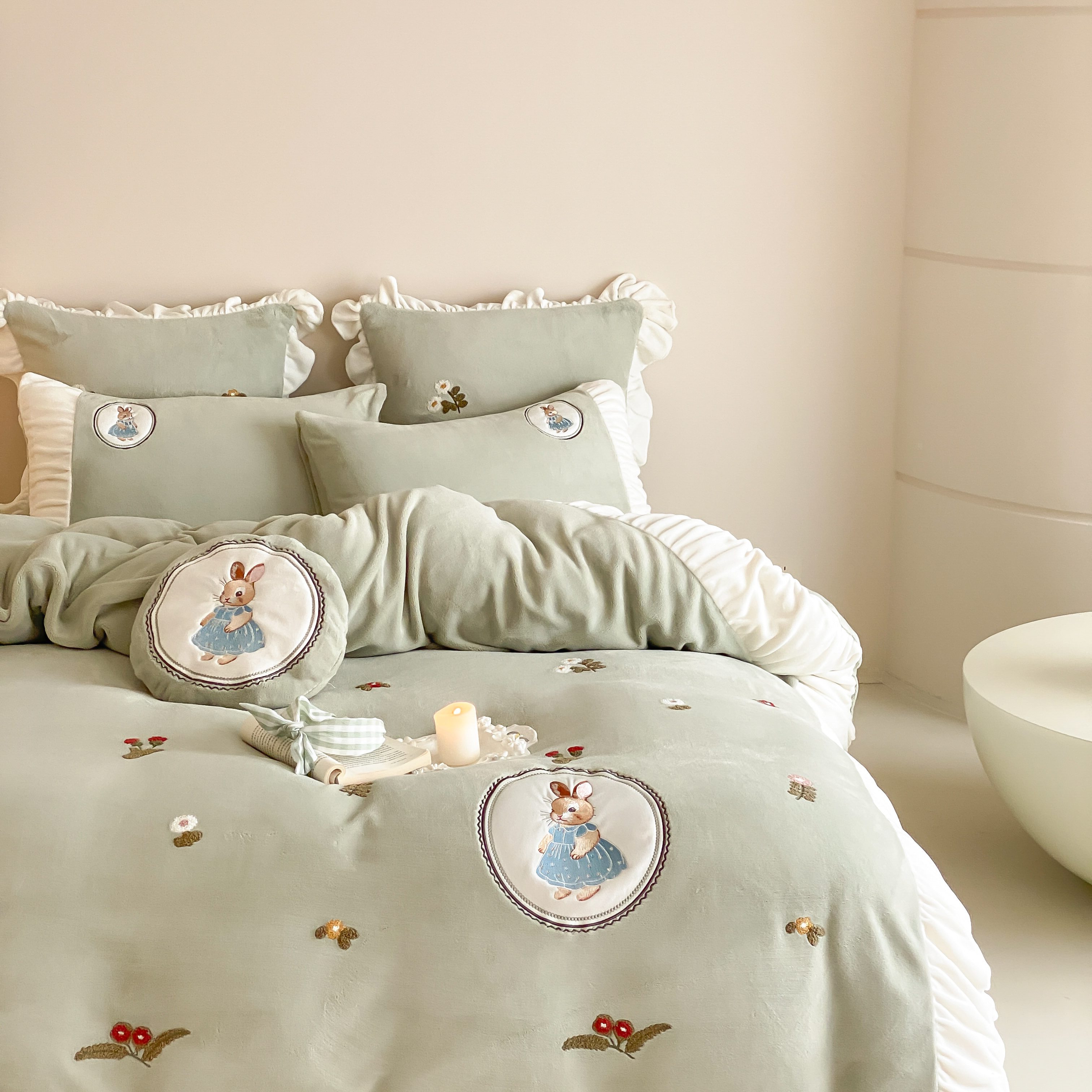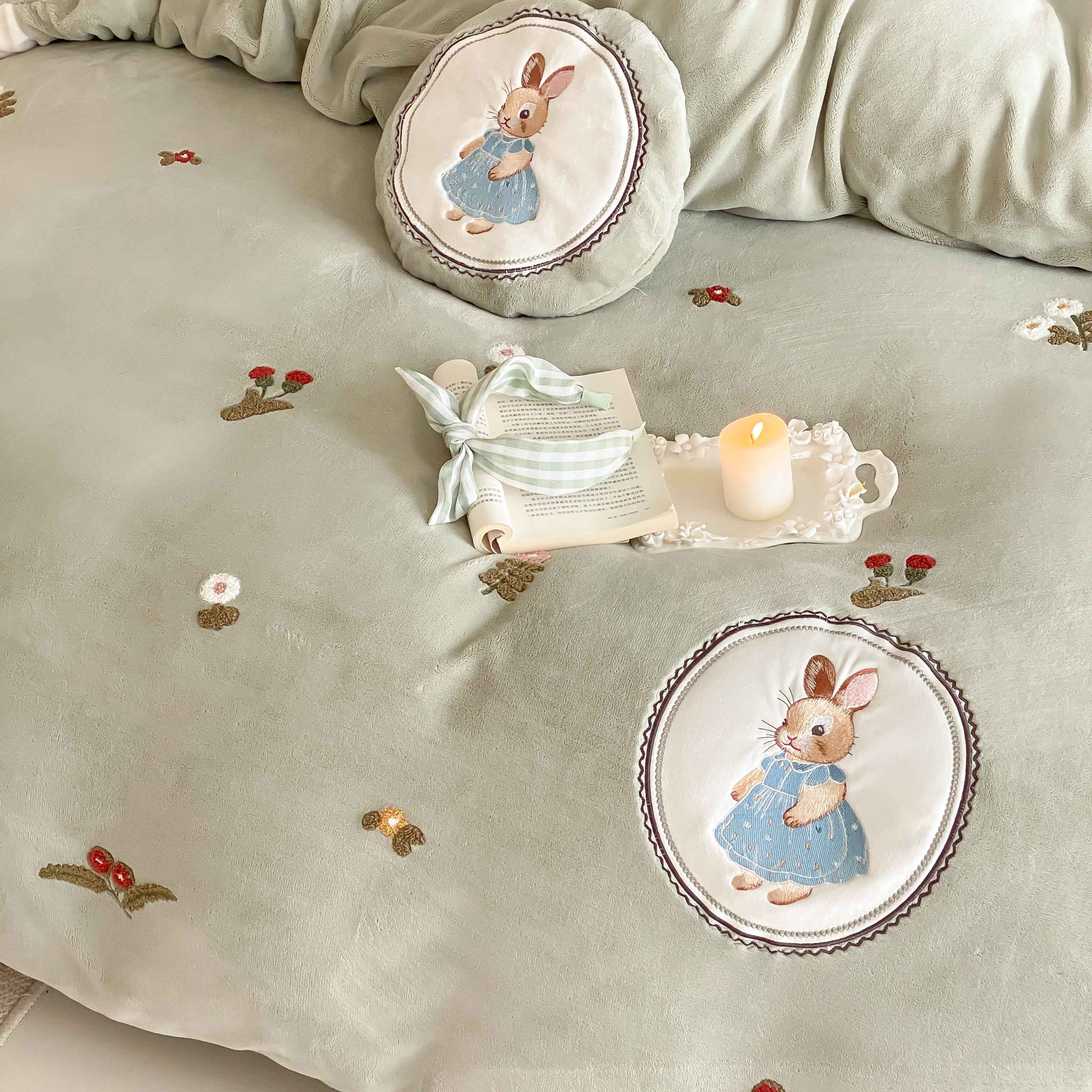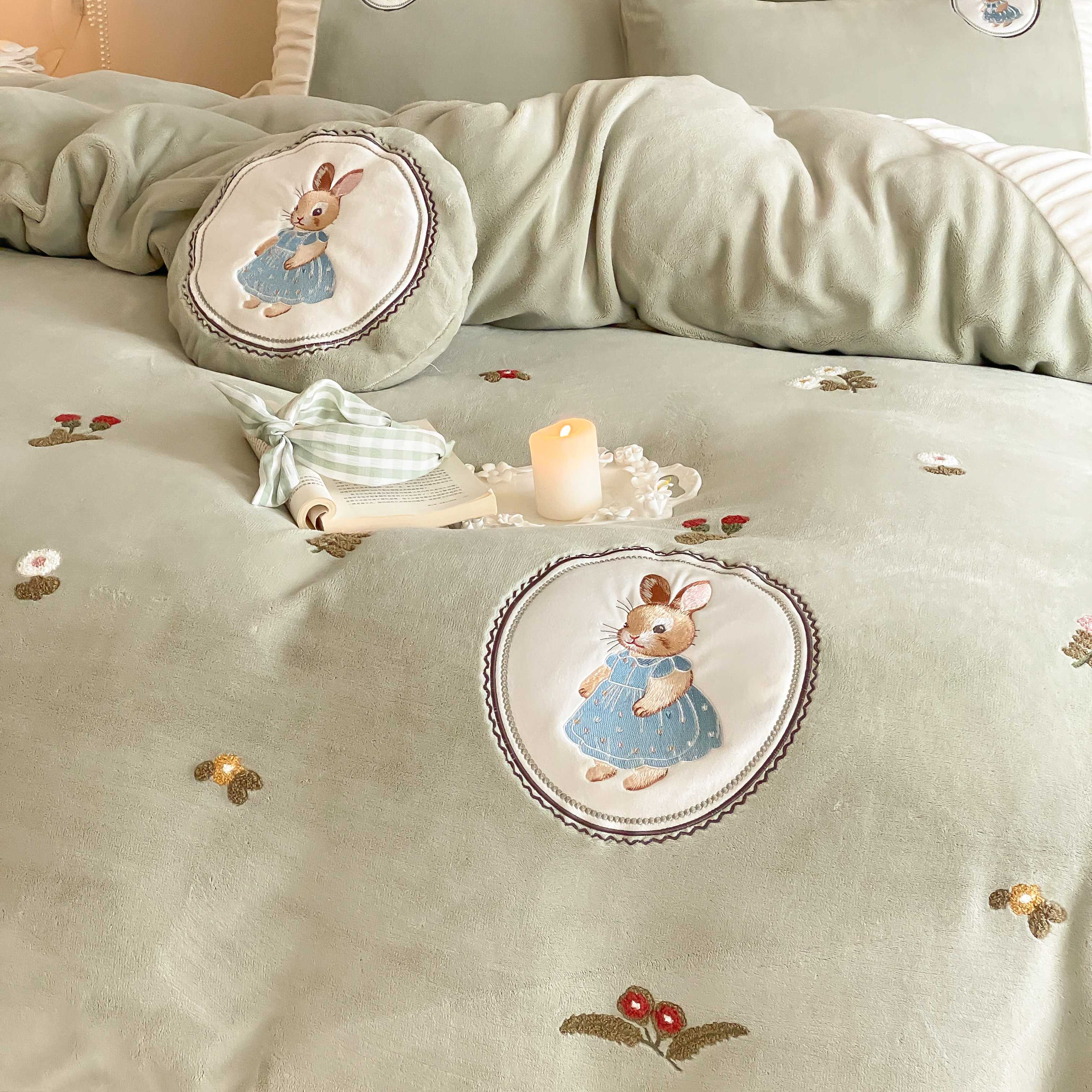 (总)星野 2025新款高克重牛奶绒贴布绣四件套-波点兔,波点兔