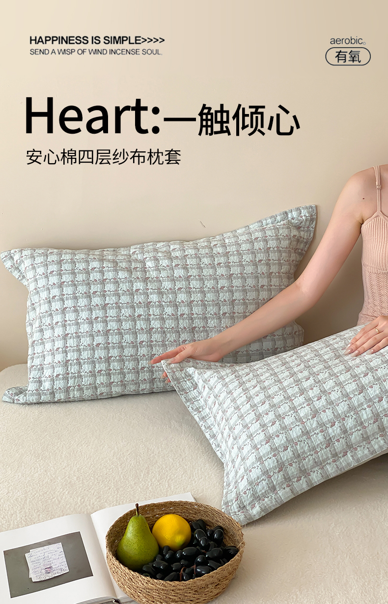 商品名称:麻依 2025新款安心棉枕套四层纱布枕套 伊慕