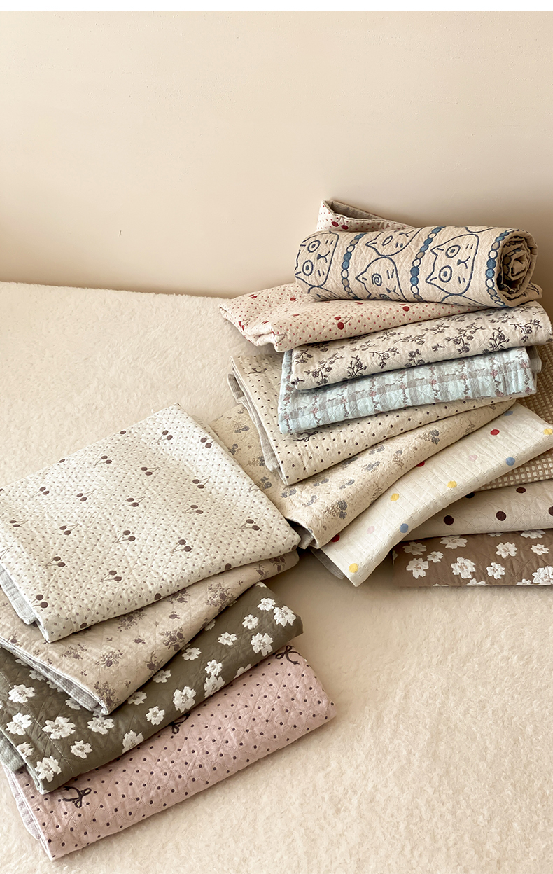 (总)麻依 2025新款韩国清新全棉纱布床盖三件套,憨憨熊,彩色南瓜,车厘子,两颗草莓,奶盖KT,奶油波点-灰,奶油彩点,水蓝KT,水墨花,丝带,桃心-米白,小猫鱼