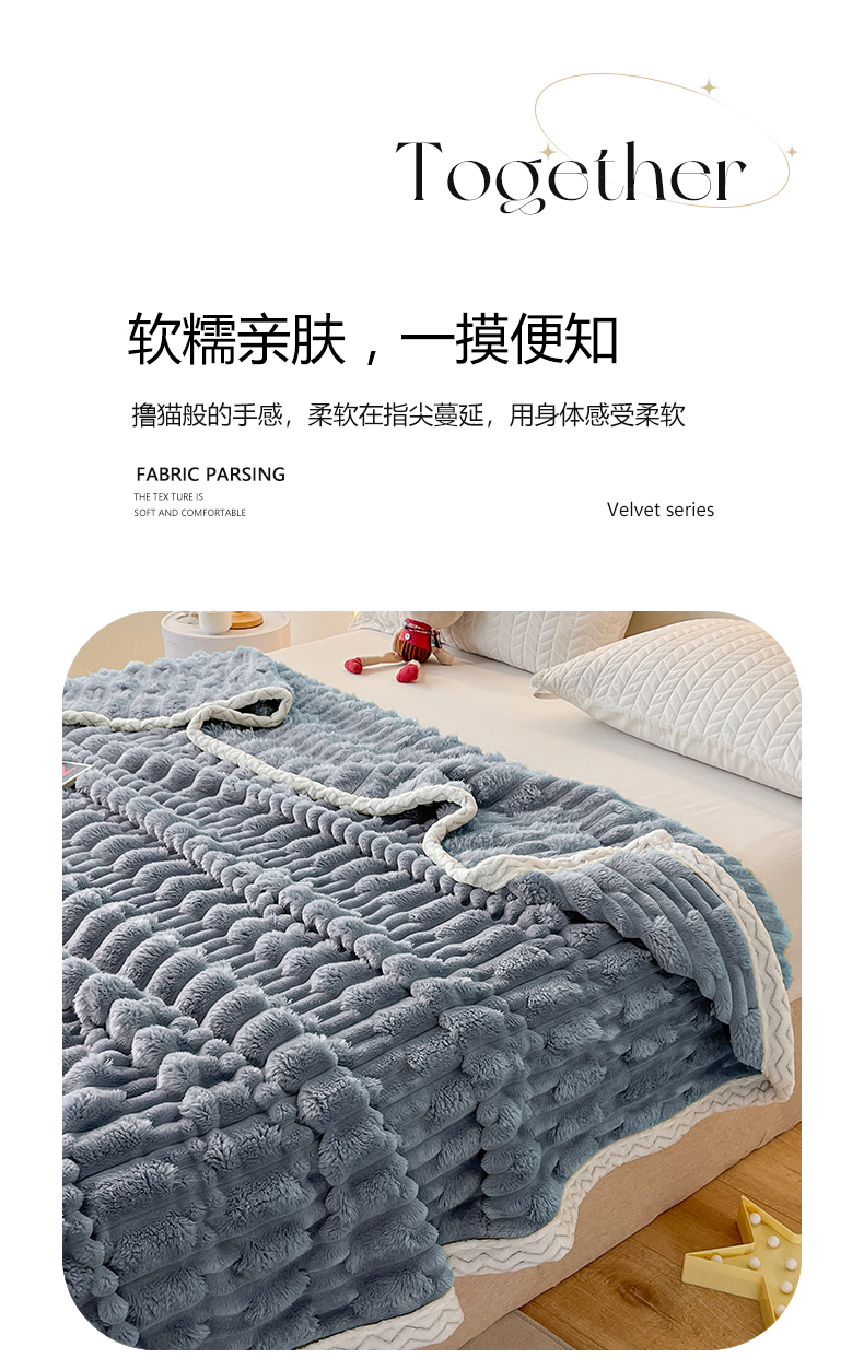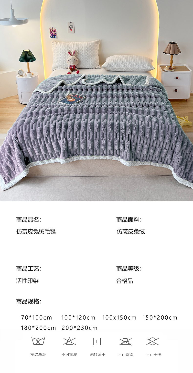 商品名称:yyds网供 2025新款超柔仿裘皮兔绒竹节绒毛毯高克重盖毯沙发毯冬季多功能绒毯子 竹节绒-雾蓝