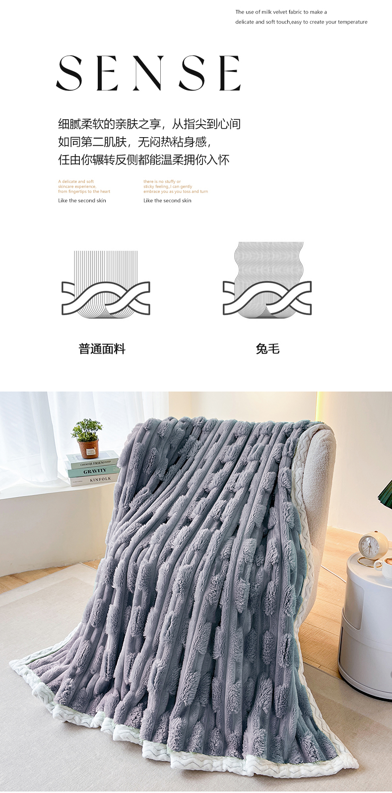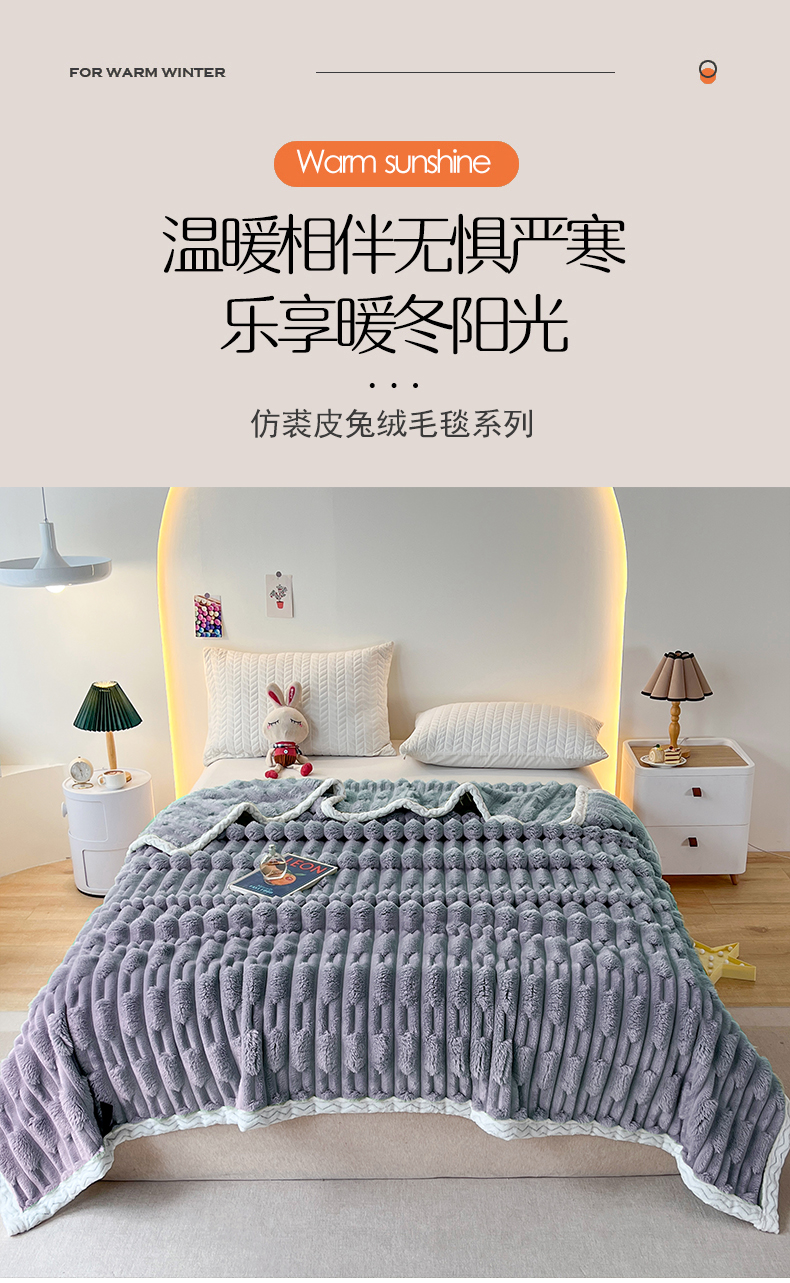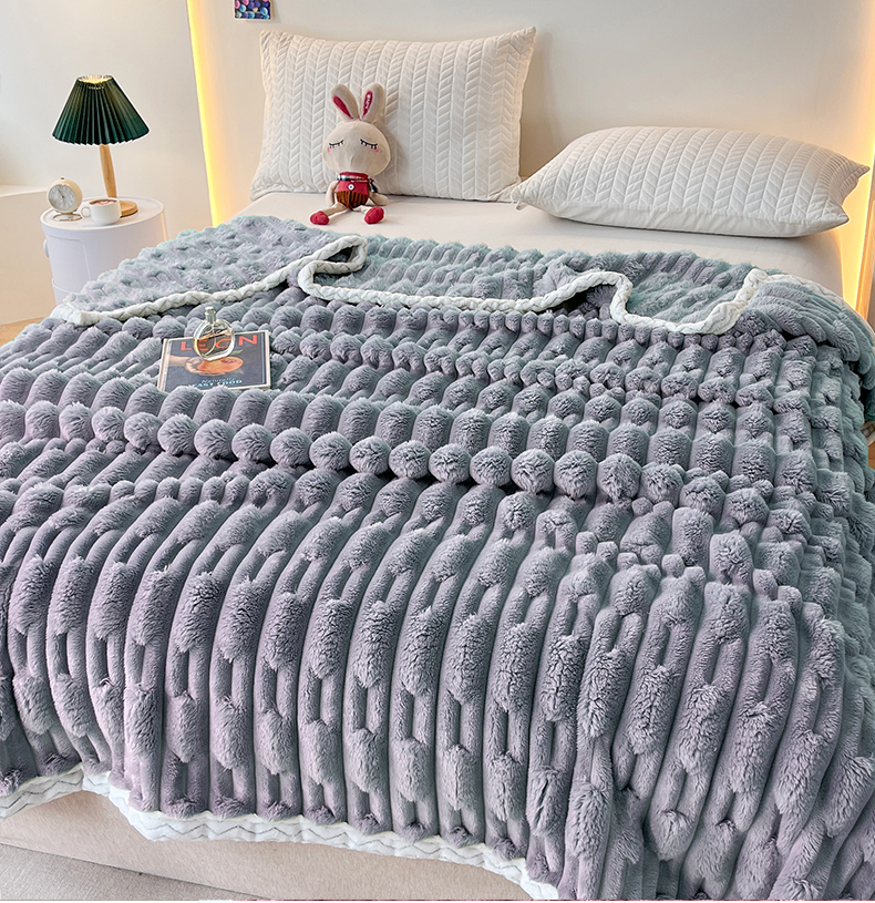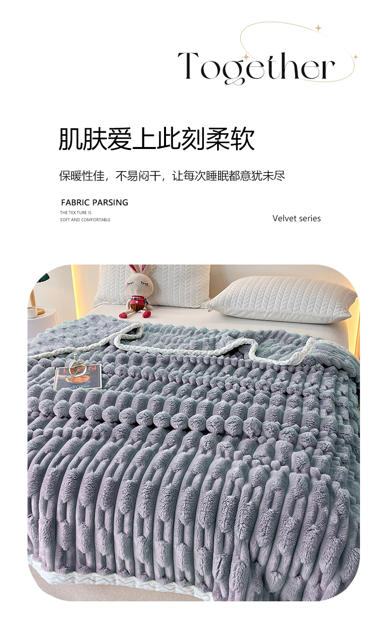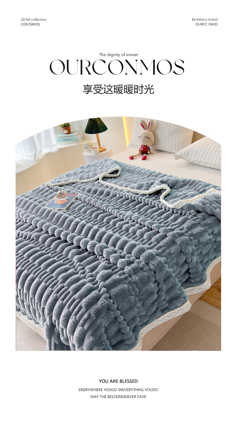 yyds网供 2025新款超柔仿裘皮兔绒竹节绒毛毯高克重盖毯沙发毯冬季多功能绒毯子 竹节绒-雾蓝
