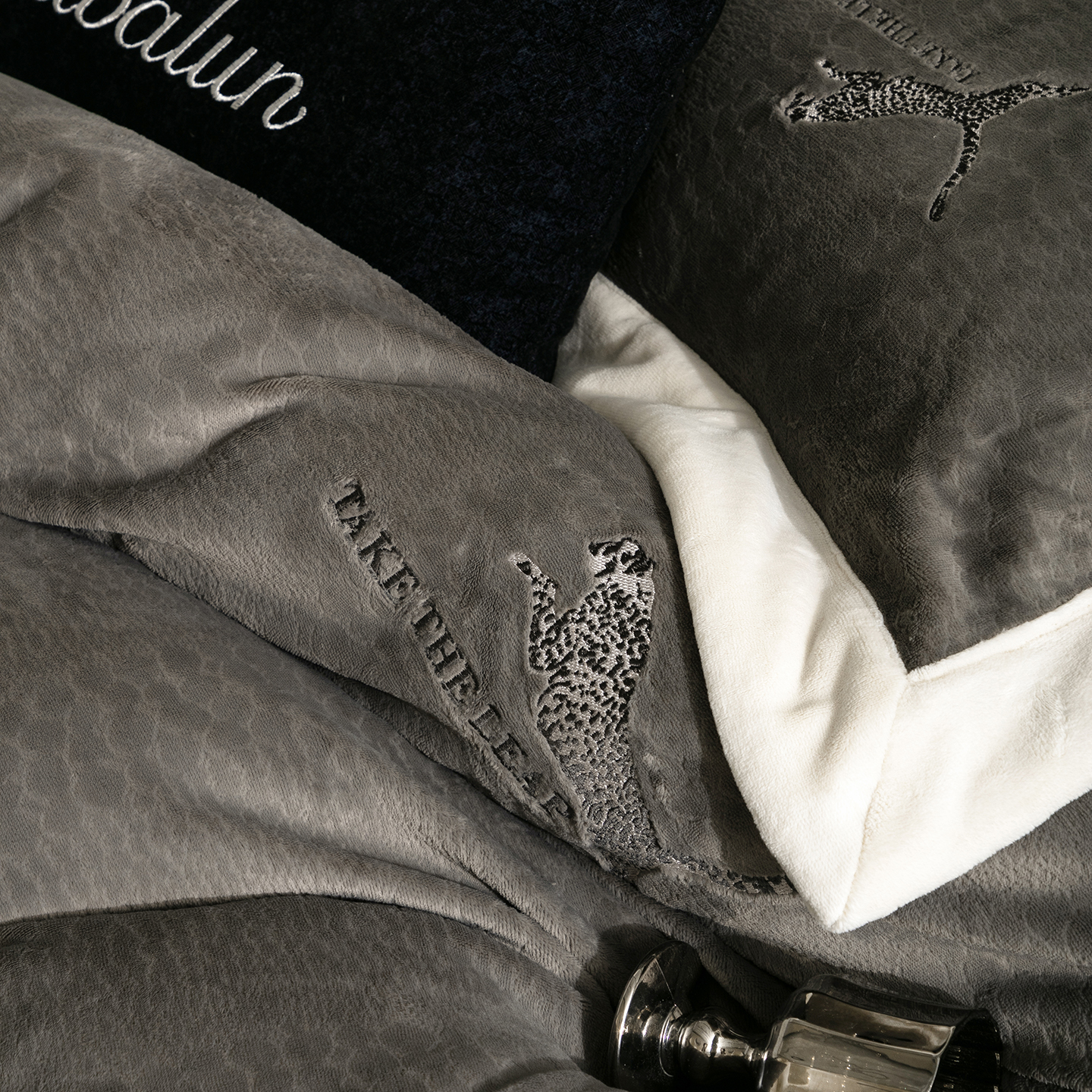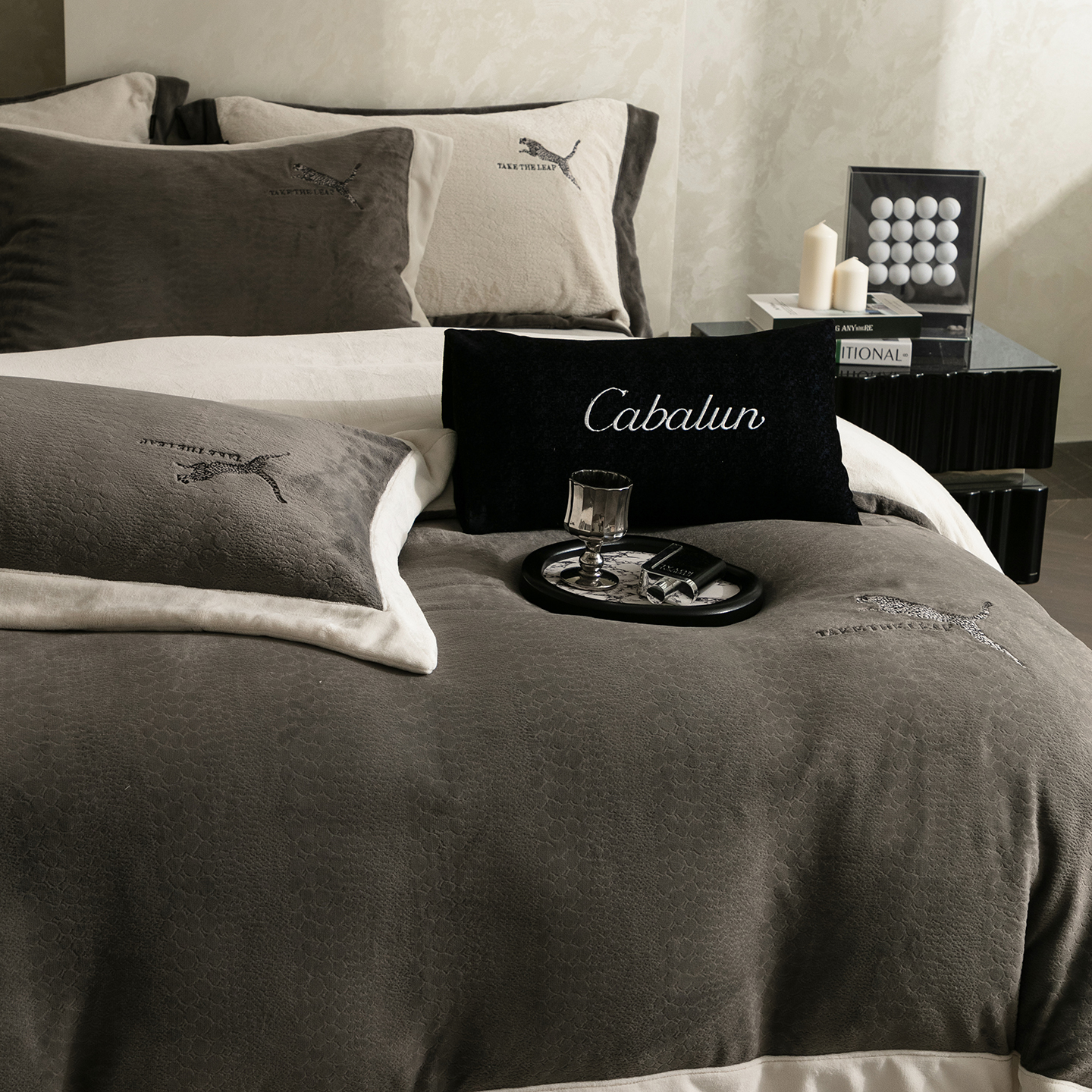 卡巴伦家纺 2025新款烂花拼角绣花四件套-豹富(会员:-20元 控价:298) 豹富-流光白