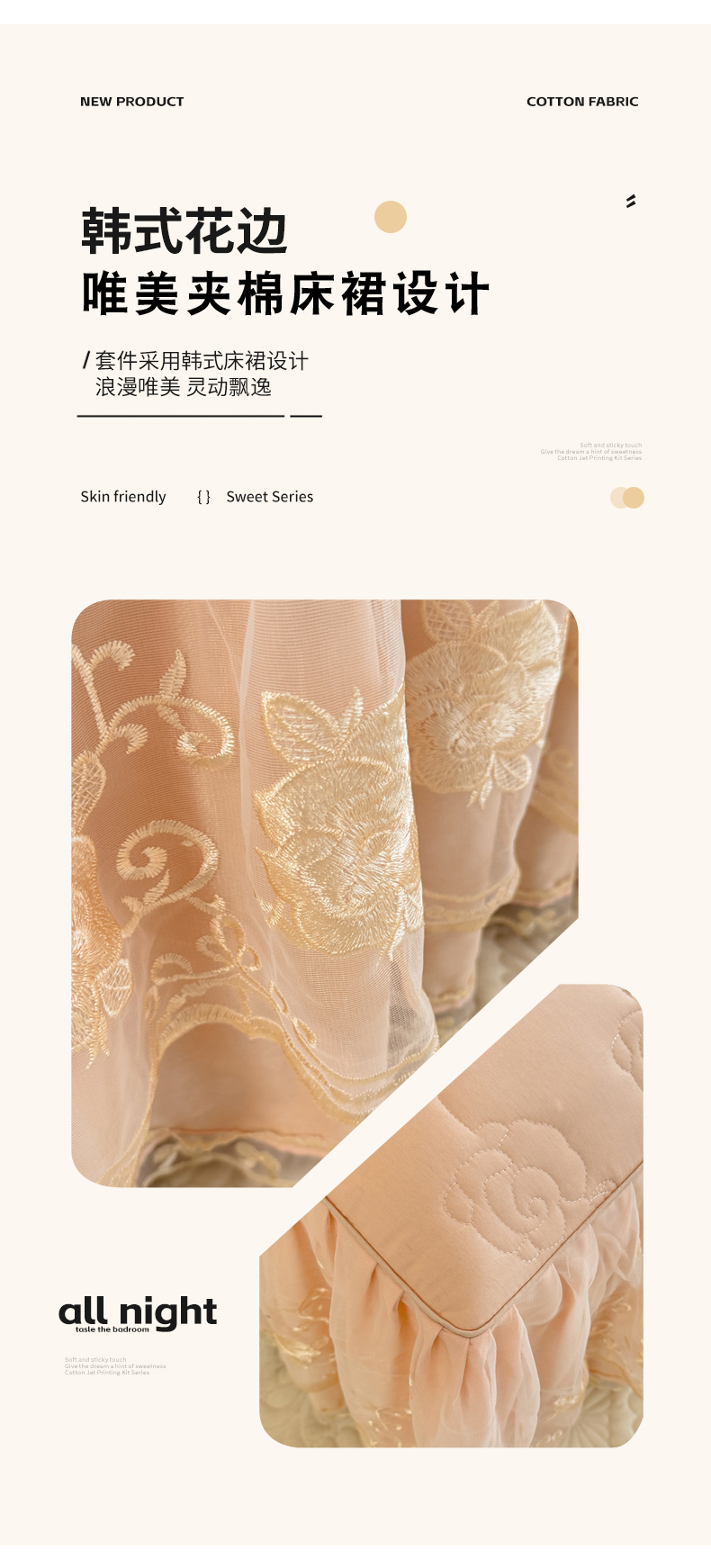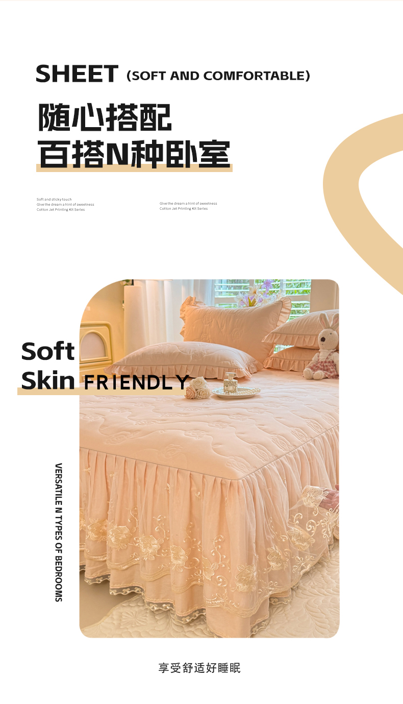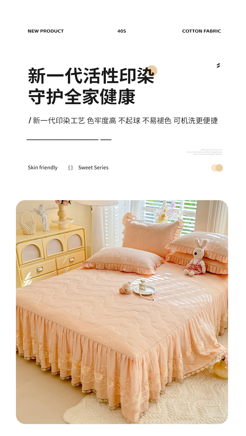 (总)美达家纺 2025新款全棉AB版单层床裙,解语花,南湘,沁雨花叶,悦棠