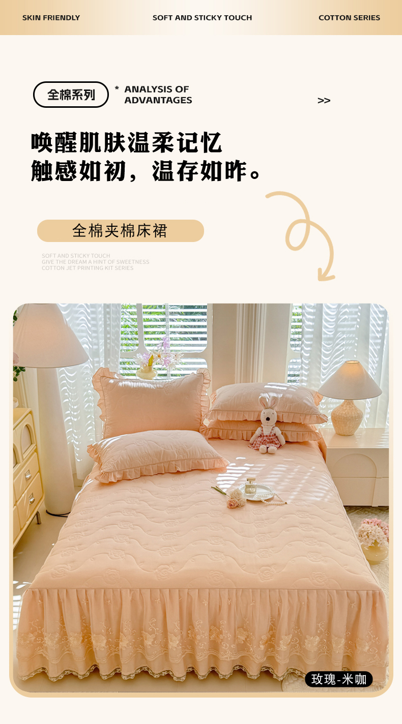 (总)美达家纺 2025新款玫瑰系列全棉夹棉床裙