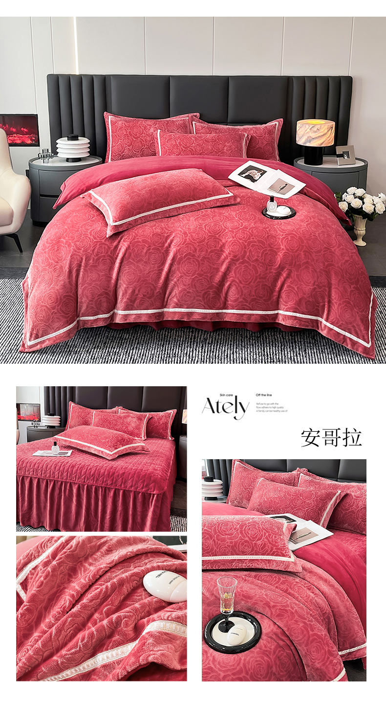 (总)妮恒美家纺 2025新款雕花牛奶绒四件套,法式浪漫-嫣紫,法式浪漫-海蓝灰,法式浪漫-奶茶杏,山水画-海蓝灰,山水画-浅豆沙,山水画-嫣紫,雪莲花-草绿,雪莲花-暖心玉,雪莲花-浅灰绿