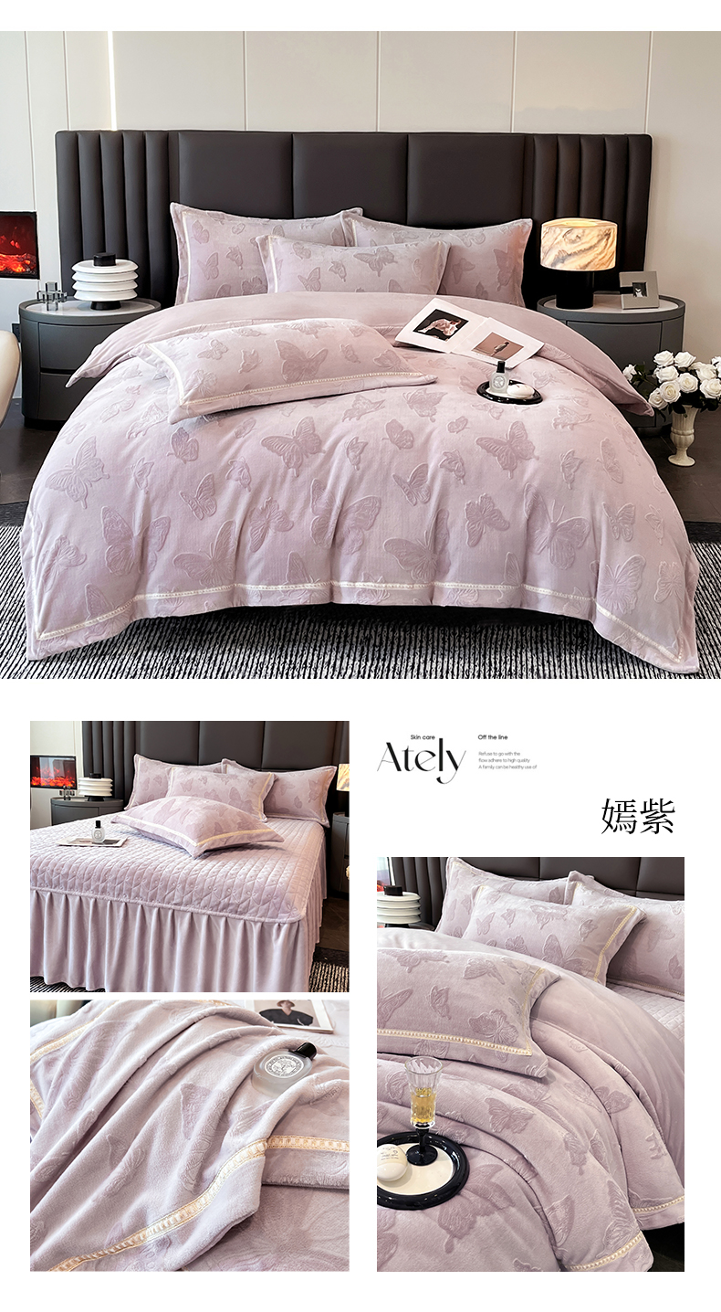 (总)妮恒美家纺 2025新款高克重雕花牛奶绒大拼角四件套-知秋系列,知秋-茶绿,蝶恋-暖心紫,蝶恋-高级咖,蝶恋-焦糖,蝶恋-石英灰,知秋-拿铁,知秋-暖心紫