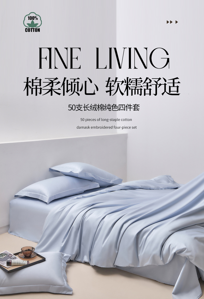当前位置: 91家纺网 > 商品网购 > 床品套件 > 四件套 > 全棉普通四件套 > DoDo 兜兜 2026新款全棉纯棉50支长绒棉三四件套 可定做尺寸 海蓝色