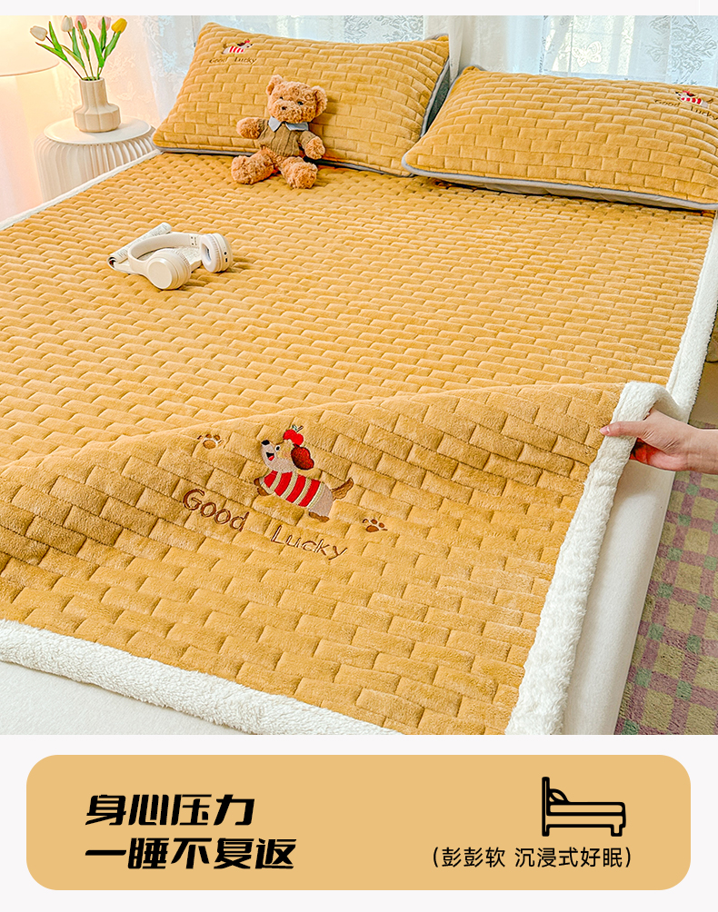 (总)恋绒家纺 2025新款加厚牛奶绒夹棉床褥床护垫床垫,幸运狗-杏黄,幸运狗-浅咖,幸运狗-深灰,幸运狗-香槟,幸运狗-银灰,幸运狗-湛蓝