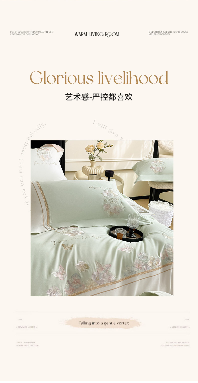 当前位置: 91家纺网 > 商品网购 > 床品套件 > 四件套 > 全棉普通四件套 > 2025秋冬新款轻奢高级感加厚保暖全棉纯棉磨毛重工刺绣四件套床上用品花间集 花间集-清绿