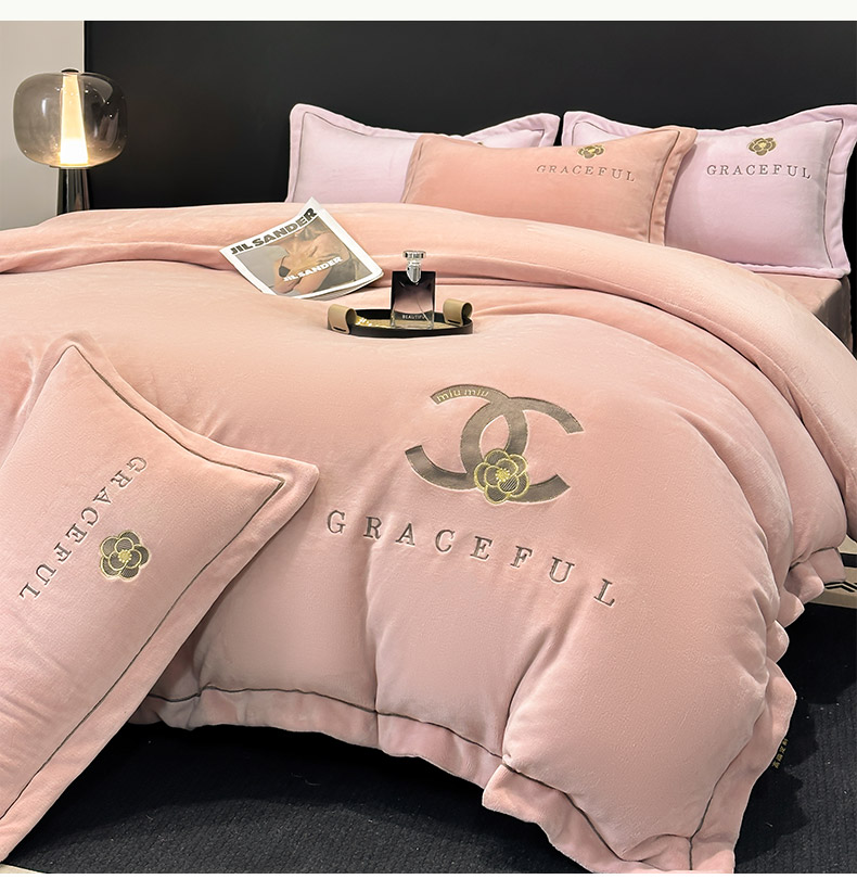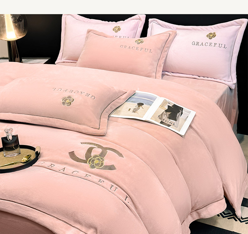 合欢(原天一阁) 2025新款A类高克重230克全消光全工艺牛奶绒刺绣四件套 巴黎密语-奶油黄