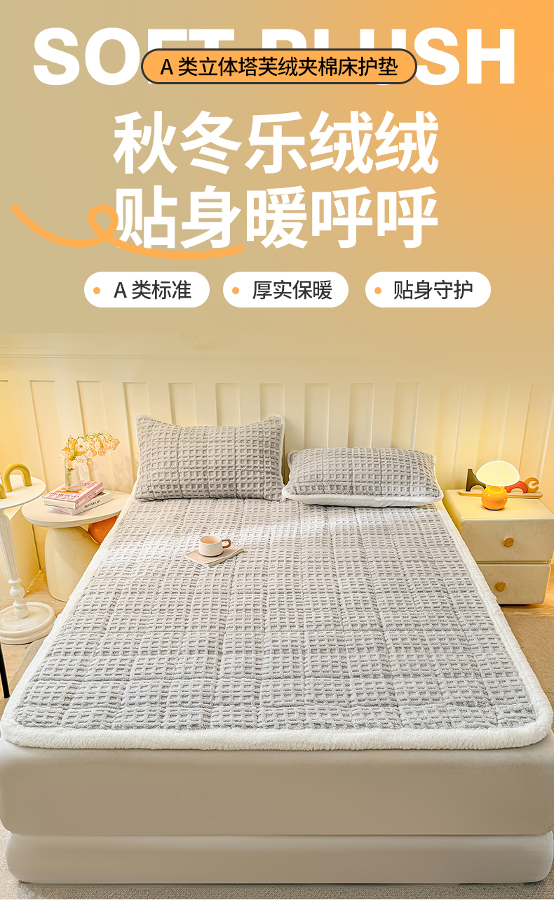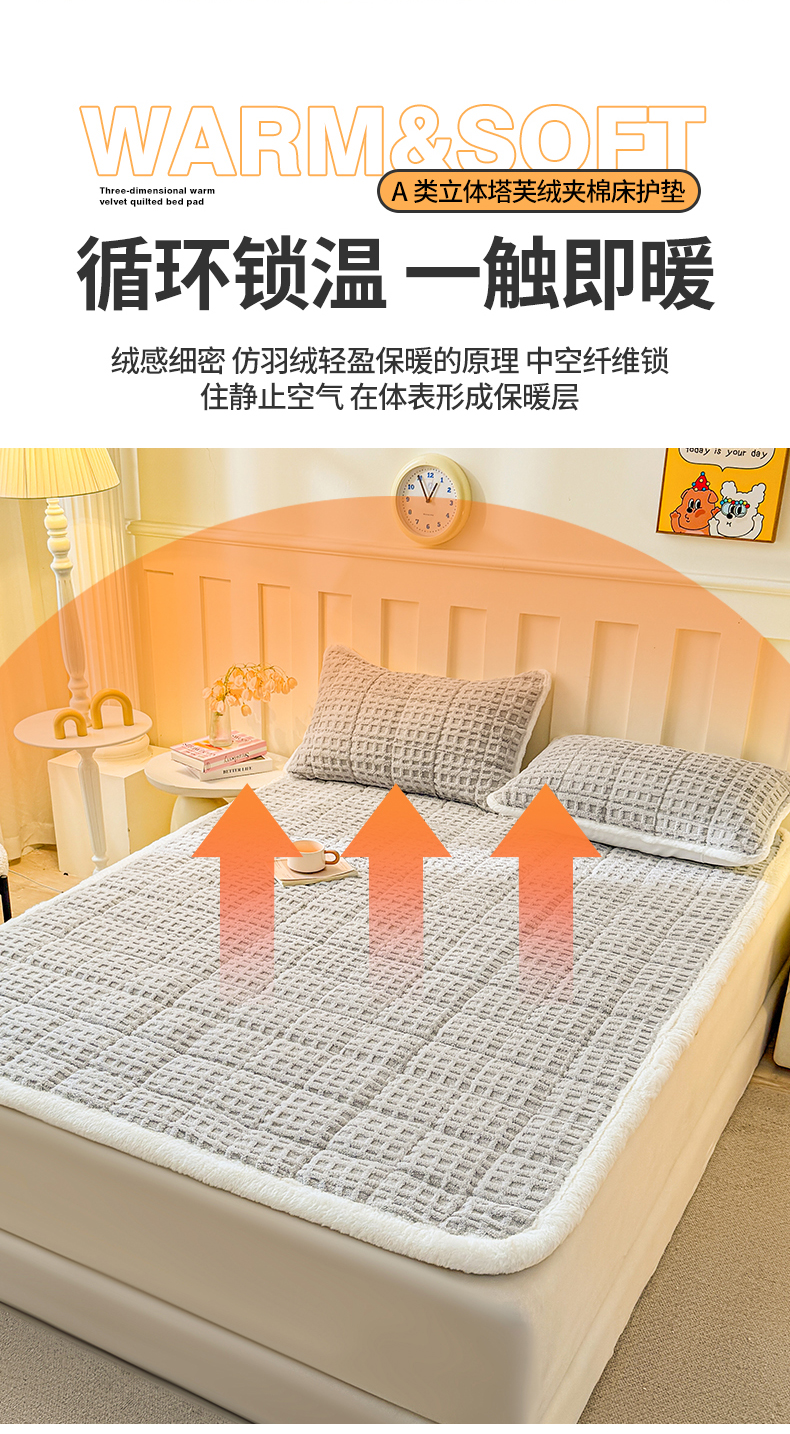 予梦家纺 2025新款塔芙绒床护垫床垫保护套 星梦格 星灰
