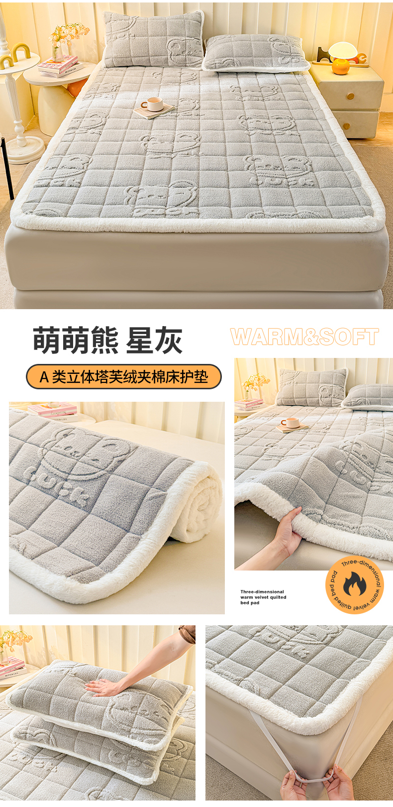(总)予梦家纺 2025新款牛奶绒加厚刺绣床护垫床垫保护套,辛德拉-小白熊绿,辛德拉-黑煤球粉,辛德拉-黑煤球灰,辛德拉-黑煤球蓝,辛德拉-黑煤球绿,辛德拉-小白熊粉,辛德拉-小白熊灰,辛德拉-小白熊蓝