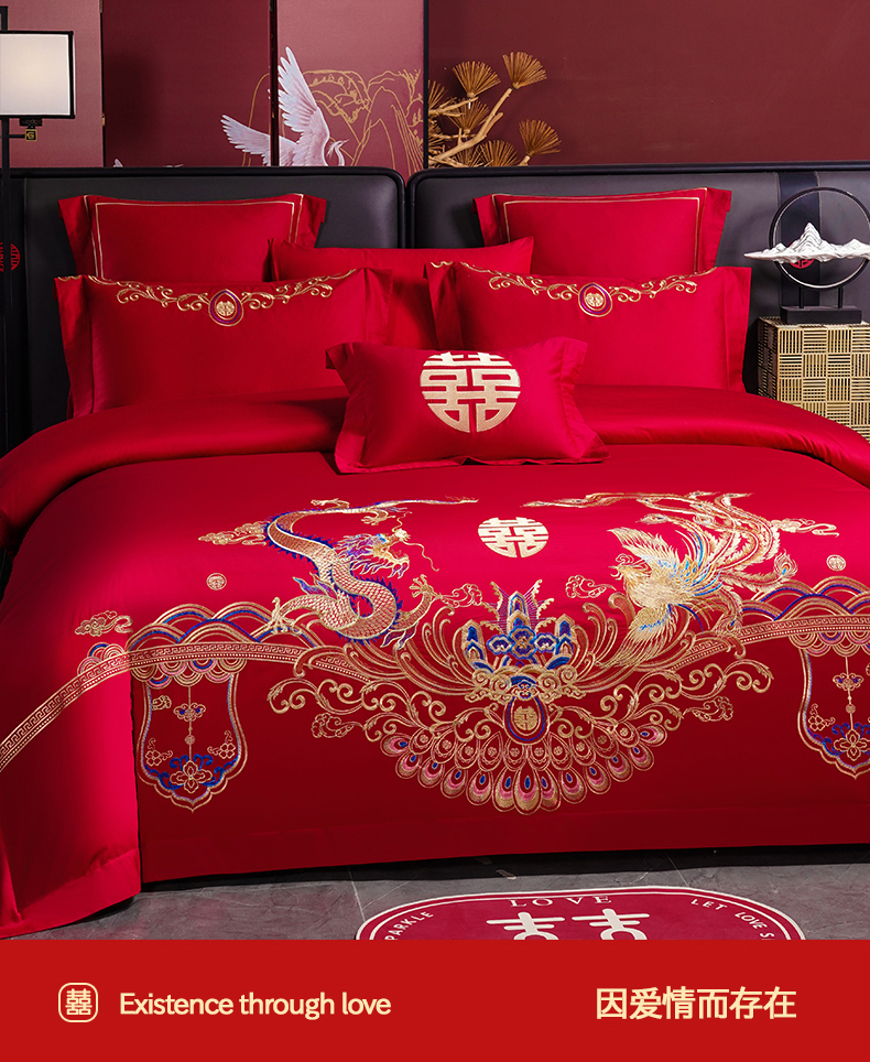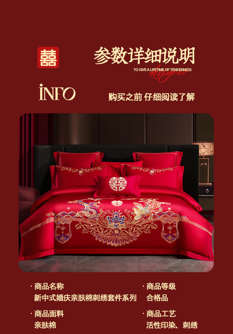 当前位置: 91家纺网 > 商品网购 > 床品套件 > 四件套 > 婚庆四件套 > 置顶家纺 2025新款新中式婚庆亲肤棉绣花四件套 欢喜龙凤-大红