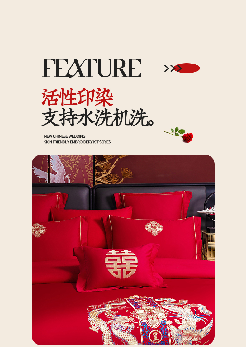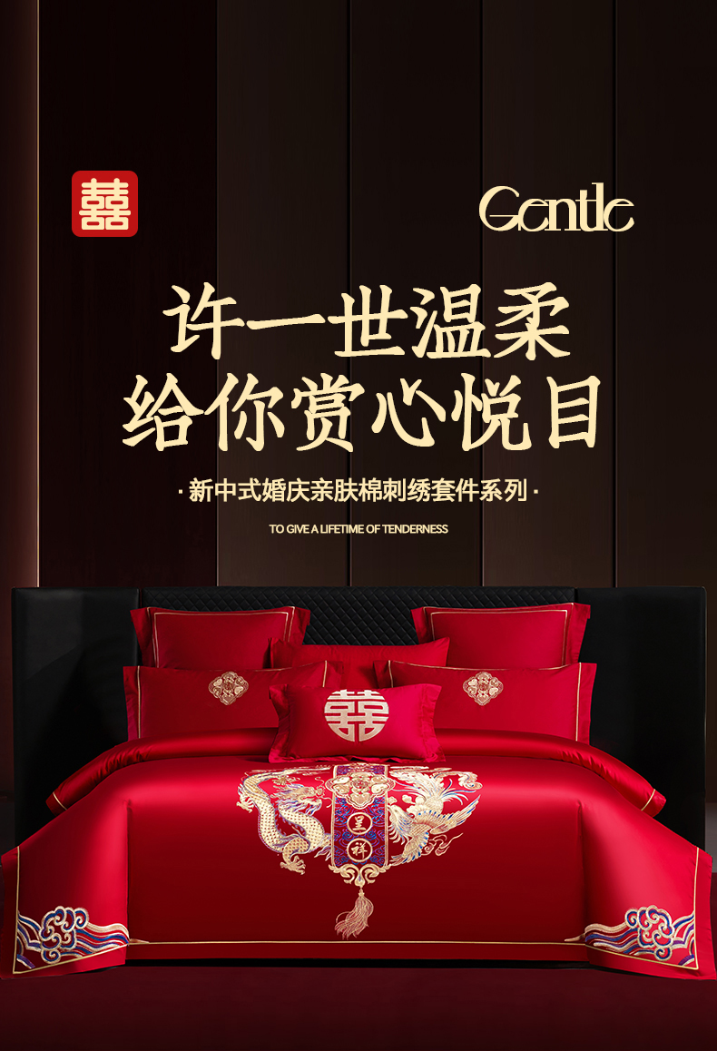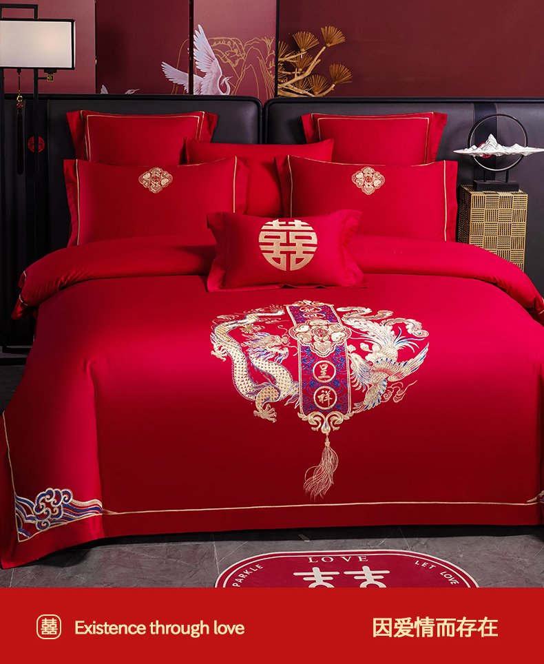 当前位置: 91家纺网 > 商品网购 > 床品套件 > 四件套 > 婚庆四件套 > 置顶家纺 2025新款新中式婚庆亲肤棉绣花四件套 龙凤喜事-大红
