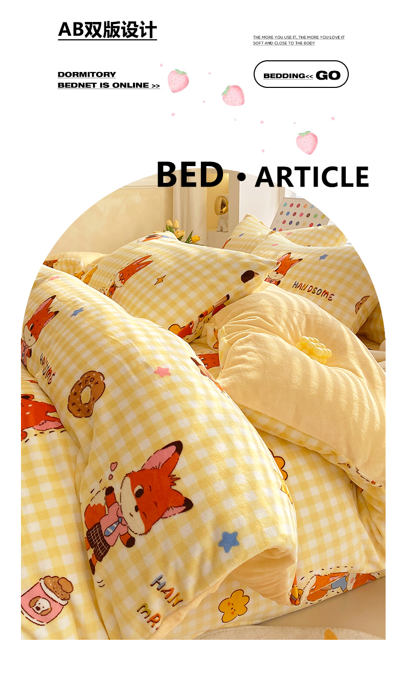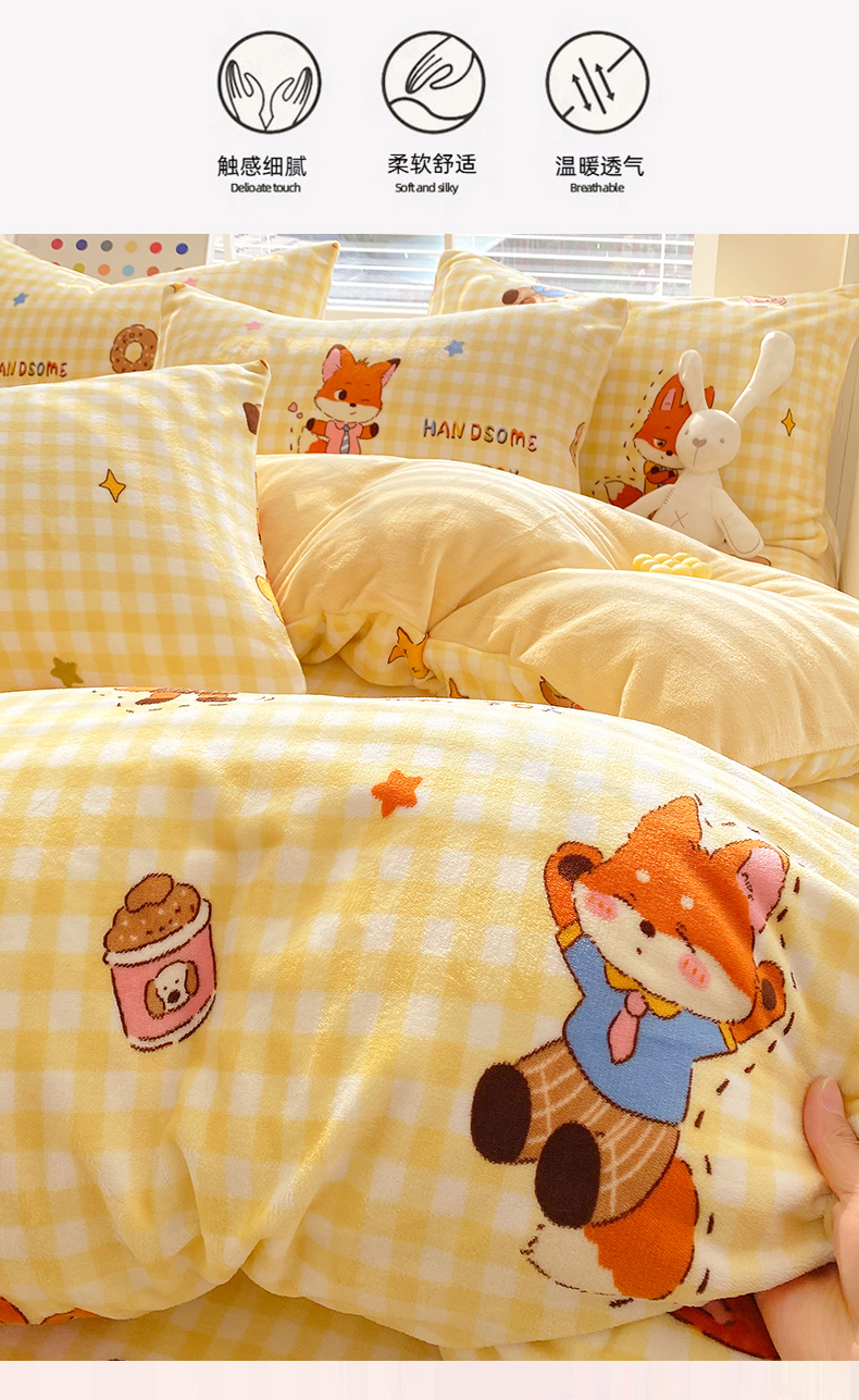 当前位置: 91家纺网 > 商品网购 > 床品套件 > 四件套 > 牛奶绒四件套 > 金鑫汇家纺 2025新款加厚高克重A类牛奶绒四件套 狐狸先生