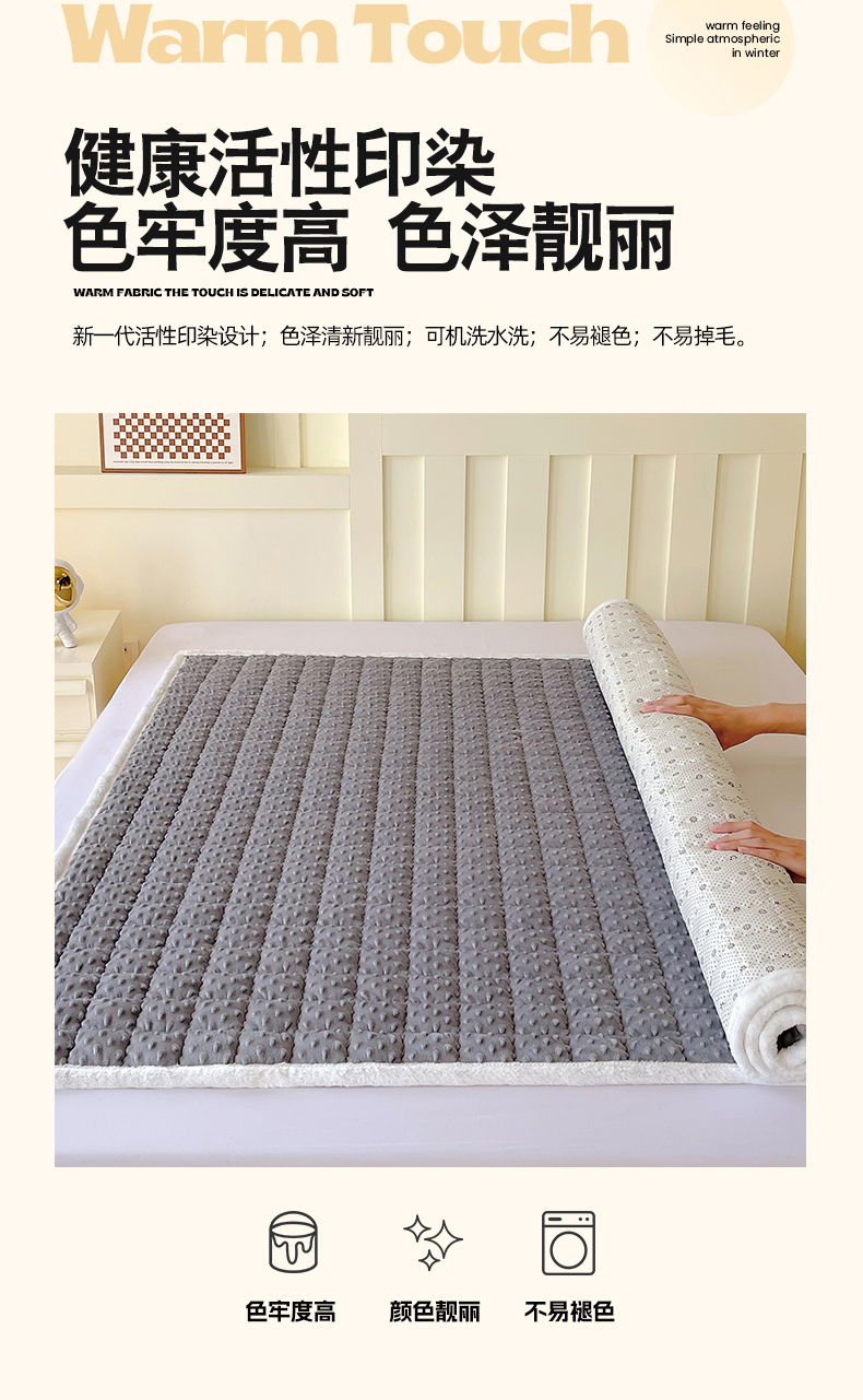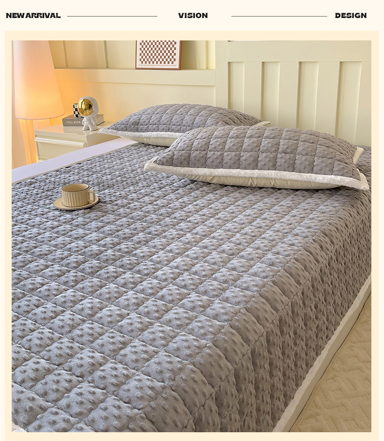 • 91家纺网 家纺一手货源 找家纺 金鑫汇家纺 2025新款加厚牛奶豆豆绒暖绒包边床褥垫 成人床:豆豆绒床褥垫:灰色