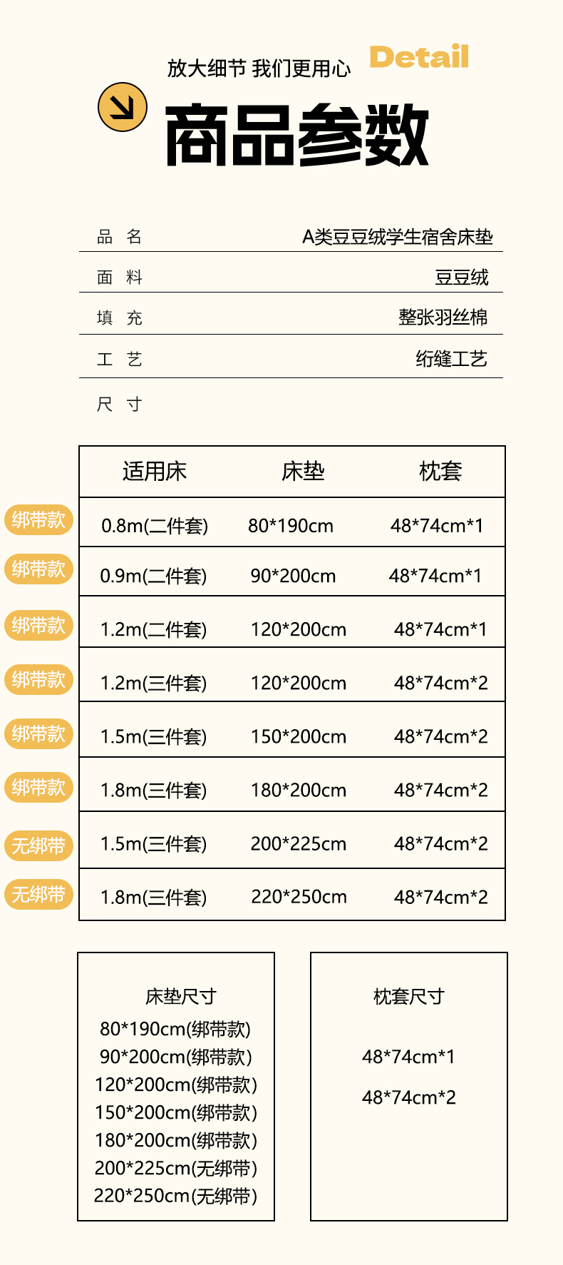 [{"sp_id":11,"sp_name":"\u989c\u8272","sp_format":2,"sp_list":[{"sp_value_id":1667,"sp_value_name":"\u5b66\u751f\u5e8a\uff1a\u8c46\u8c46\u7ed2\u5e8a\u8925\u57ab\uff1a\u7c89\u8272","sp_value_image":{"id":999,"path":"https:\/\/img3.91jf.com\/ghelp\/2025\/20251126\/20251126130859_193785.jpeg"},"sp_value_video":{"id":0,"img":"","path":"","time":0,"download_num":0,"play_num":0},"price":"8.00","storage":8500,"weight":"0.250","is_check_weight":0,"plus_price":"","sp_sort":0}]},{"sp_id":25,"sp_name":"\u5c3a\u5bf8","sp_format":1,"sp_list":[{"sp_value_id":234,"sp_value_name":"48x74cm\u6795\u5957\u4e00\u53ea","sp_value_image":{"id":0,"path":""},"sp_value_video":{"id":0,"img":"","path":"","time":0,"download_num":0,"play_num":0},"price":"8.00","storage":500,"weight":"0.250","is_check_weight":0,"plus_price":"","sp_sort":5},{"sp_value_id":235,"sp_value_name":"48x74cm\u6795\u5957\u4e00\u5bf9","sp_value_image":{"id":0,"path":""},"sp_value_video":{"id":0,"img":"","path":"","time":0,"download_num":0,"play_num":0},"price":"16.00","storage":500,"weight":"0.500","is_check_weight":0,"plus_price":"","sp_sort":6},{"sp_value_id":236,"sp_value_name":"80x190cm","sp_value_image":{"id":0,"path":""},"sp_value_video":{"id":0,"img":"","path":"","time":0,"download_num":0,"play_num":0},"price":"24.00","storage":500,"weight":"0.850","is_check_weight":0,"plus_price":"","sp_sort":7},{"sp_value_id":237,"sp_value_name":"90x200cm","sp_value_image":{"id":0,"path":""},"sp_value_video":{"id":0,"img":"","path":"","time":0,"download_num":0,"play_num":0},"price":"26.00","storage":500,"weight":"1.100","is_check_weight":0,"plus_price":"","sp_sort":8},{"sp_value_id":758,"sp_value_name":"120x200cm","sp_value_image":{"id":0,"path":""},"sp_value_video":{"id":0,"img":"","path":"","time":0,"download_num":0,"play_num":0},"price":"30.00","storage":500,"weight":"1.200","is_check_weight":0,"plus_price":"","sp_sort":9},{"sp_value_id":759,"sp_value_name":"150x200cm","sp_value_image":{"id":0,"path":""},"sp_value_video":{"id":0,"img":"","path":"","time":0,"download_num":0,"play_num":0},"price":"36.00","storage":500,"weight":"1.700","is_check_weight":0,"plus_price":"","sp_sort":10},{"sp_value_id":760,"sp_value_name":"180x200cm","sp_value_image":{"id":0,"path":""},"sp_value_video":{"id":0,"img":"","path":"","time":0,"download_num":0,"play_num":0},"price":"40.00","storage":500,"weight":"1.800","is_check_weight":0,"plus_price":"","sp_sort":11},{"sp_value_id":761,"sp_value_name":"200x220cm","sp_value_image":{"id":0,"path":""},"sp_value_video":{"id":0,"img":"","path":"","time":0,"download_num":0,"play_num":0},"price":"45.00","storage":500,"weight":"2.100","is_check_weight":0,"plus_price":"","sp_sort":12},{"sp_value_id":762,"sp_value_name":"220x250cm","sp_value_image":{"id":0,"path":""},"sp_value_video":{"id":0,"img":"","path":"","time":0,"download_num":0,"play_num":0},"price":"53.00","storage":500,"weight":"2.400","is_check_weight":0,"plus_price":"","sp_sort":13},{"sp_value_id":763,"sp_value_name":"80x190cm+\u6795\u5957\u4e00\u53ea","sp_value_image":{"id":0,"path":""},"sp_value_video":{"id":0,"img":"","path":"","time":0,"download_num":0,"play_num":0},"price":"32.00","storage":500,"weight":"1.100","is_check_weight":0,"plus_price":"","sp_sort":14},{"sp_value_id":796,"sp_value_name":"90x200cm+\u6795\u5957\u4e00\u53ea","sp_value_image":{"id":0,"path":""},"sp_value_video":{"id":0,"img":"","path":"","time":0,"download_num":0,"play_num":0},"price":"34.00","storage":500,"weight":"1.350","is_check_weight":0,"plus_price":"","sp_sort":15},{"sp_value_id":827,"sp_value_name":"120x200cm+\u6795\u5957\u4e00\u53ea","sp_value_image":{"id":0,"path":""},"sp_value_video":{"id":0,"img":"","path":"","time":0,"download_num":0,"play_num":0},"price":"38.00","storage":500,"weight":"1.450","is_check_weight":0,"plus_price":"","sp_sort":16},{"sp_value_id":828,"sp_value_name":"120x200cm+\u6795\u5957\u4e00\u5bf9","sp_value_image":{"id":0,"path":""},"sp_value_video":{"id":0,"img":"","path":"","time":0,"download_num":0,"play_num":0},"price":"46.00","storage":500,"weight":"1.700","is_check_weight":0,"plus_price":"","sp_sort":17},{"sp_value_id":829,"sp_value_name":"150x200cm+\u6795\u5957\u4e00\u5bf9","sp_value_image":{"id":0,"path":""},"sp_value_video":{"id":0,"img":"","path":"","time":0,"download_num":0,"play_num":0},"price":"52.00","storage":500,"weight":"2.200","is_check_weight":0,"plus_price":"","sp_sort":18},{"sp_value_id":830,"sp_value_name":"180x200cm+\u6795\u5957\u4e00\u5bf9","sp_value_image":{"id":0,"path":""},"sp_value_video":{"id":0,"img":"","path":"","time":0,"download_num":0,"play_num":0},"price":"56.00","storage":500,"weight":"2.300","is_check_weight":0,"plus_price":"","sp_sort":19},{"sp_value_id":831,"sp_value_name":"200x220cm+\u6795\u5957\u4e00\u5bf9\uff08\u6ca1\u6709\u7ed1\u5e26\uff09","sp_value_image":{"id":0,"path":""},"sp_value_video":{"id":0,"img":"","path":"","time":0,"download_num":0,"play_num":0},"price":"61.00","storage":500,"weight":"2.600","is_check_weight":0,"plus_price":"","sp_sort":20},{"sp_value_id":930,"sp_value_name":"220x250cm+\u6795\u5957\u4e00\u5bf9\uff08\u6ca1\u6709\u7ed1\u5e26 \u6a2a\u88c1\u82b1\u578b\uff09","sp_value_image":{"id":0,"path":""},"sp_value_video":{"id":0,"img":"","path":"","time":0,"download_num":0,"play_num":0},"price":"69.00","storage":500,"weight":"2.900","is_check_weight":0,"plus_price":"","sp_sort":21}]}]