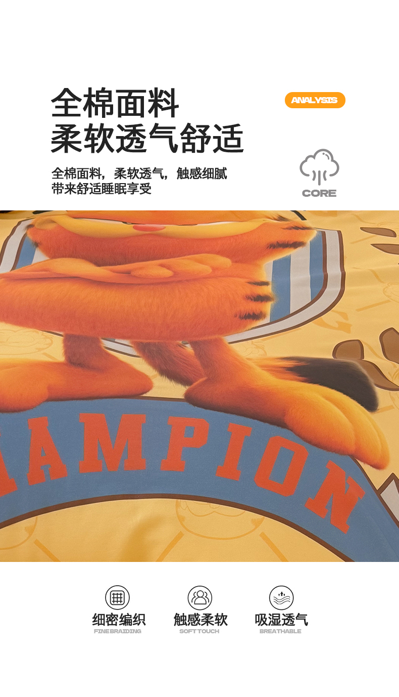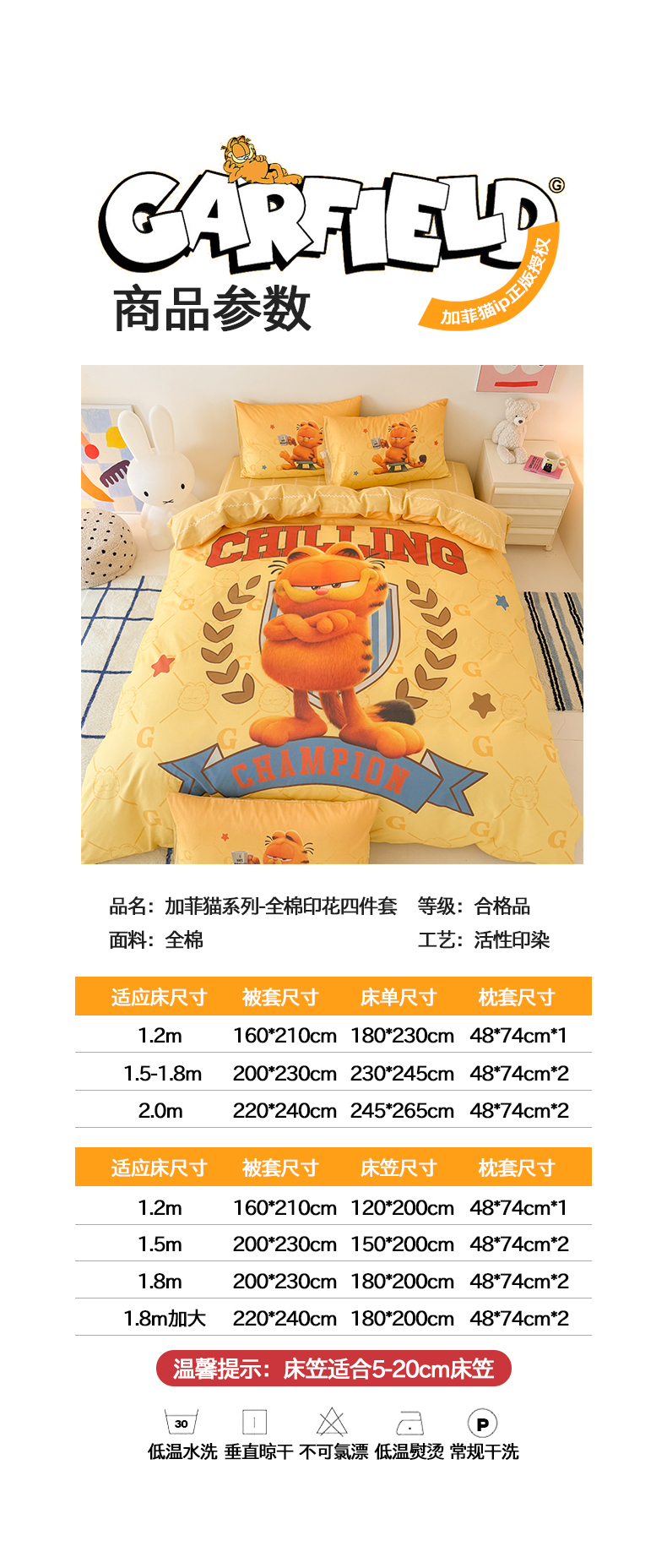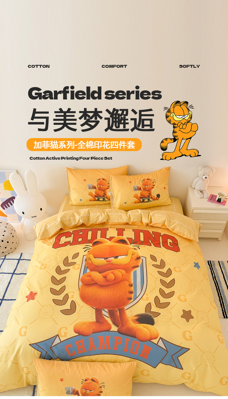 当前位置: 91家纺网 > 商品网购 > 床品套件 > 四件套 > 全棉普通四件套 > 锦彩家居 2025新款全棉数码印花卡通四件套-加菲猫系列 冠军加菲