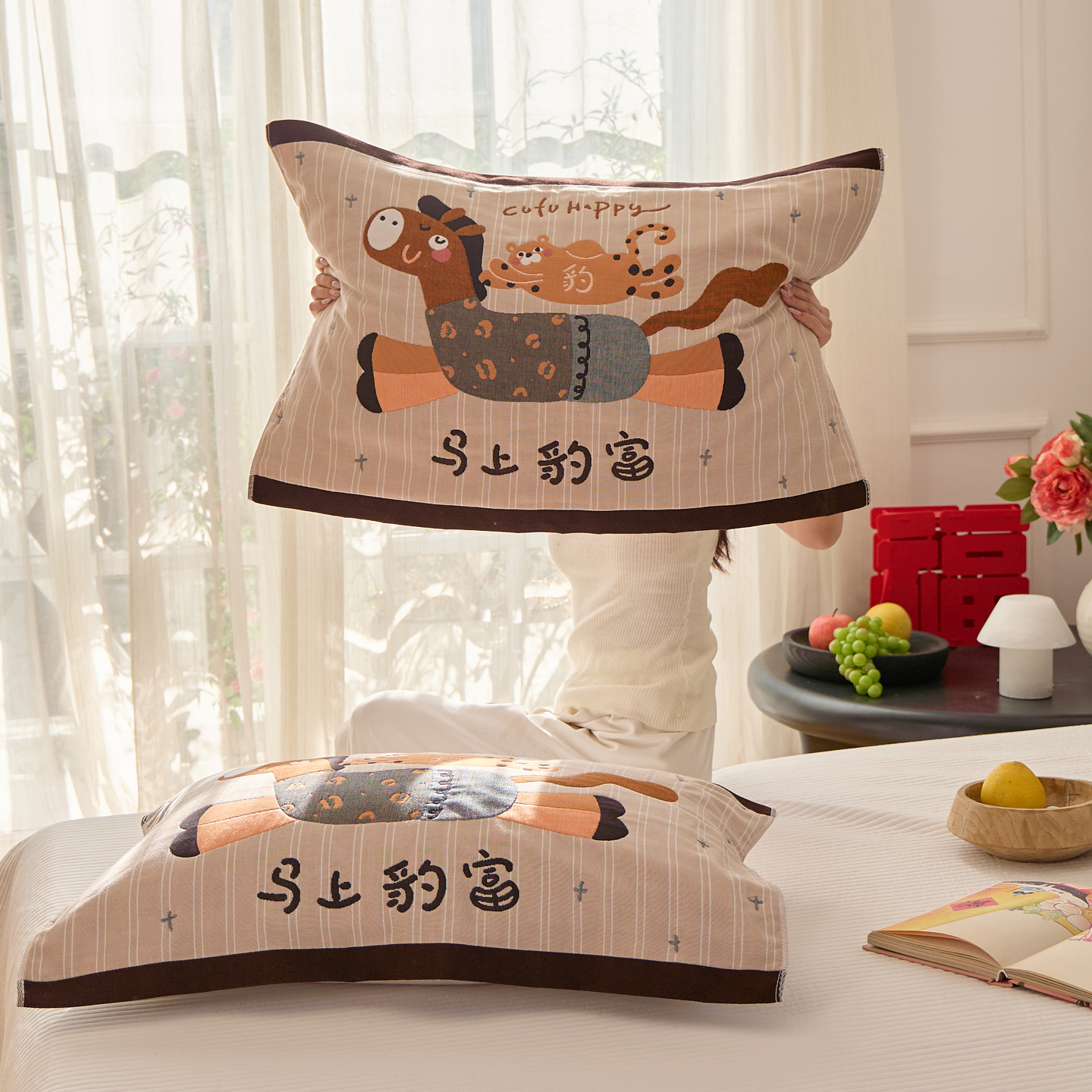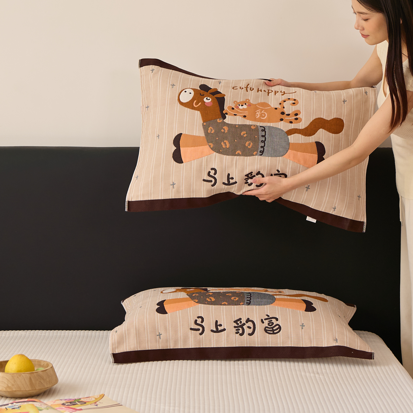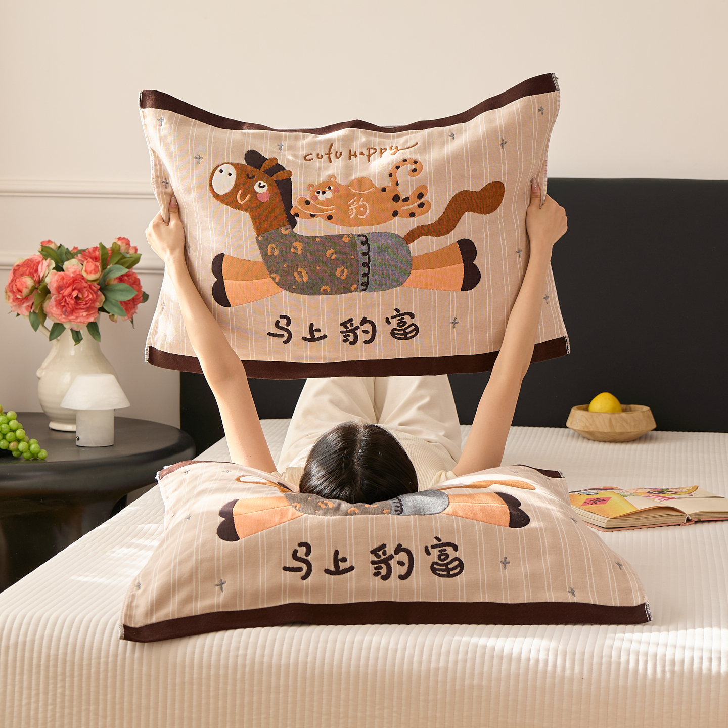 沐瑟家纺 2026新款纯棉八层枕巾-马 马上豹富
