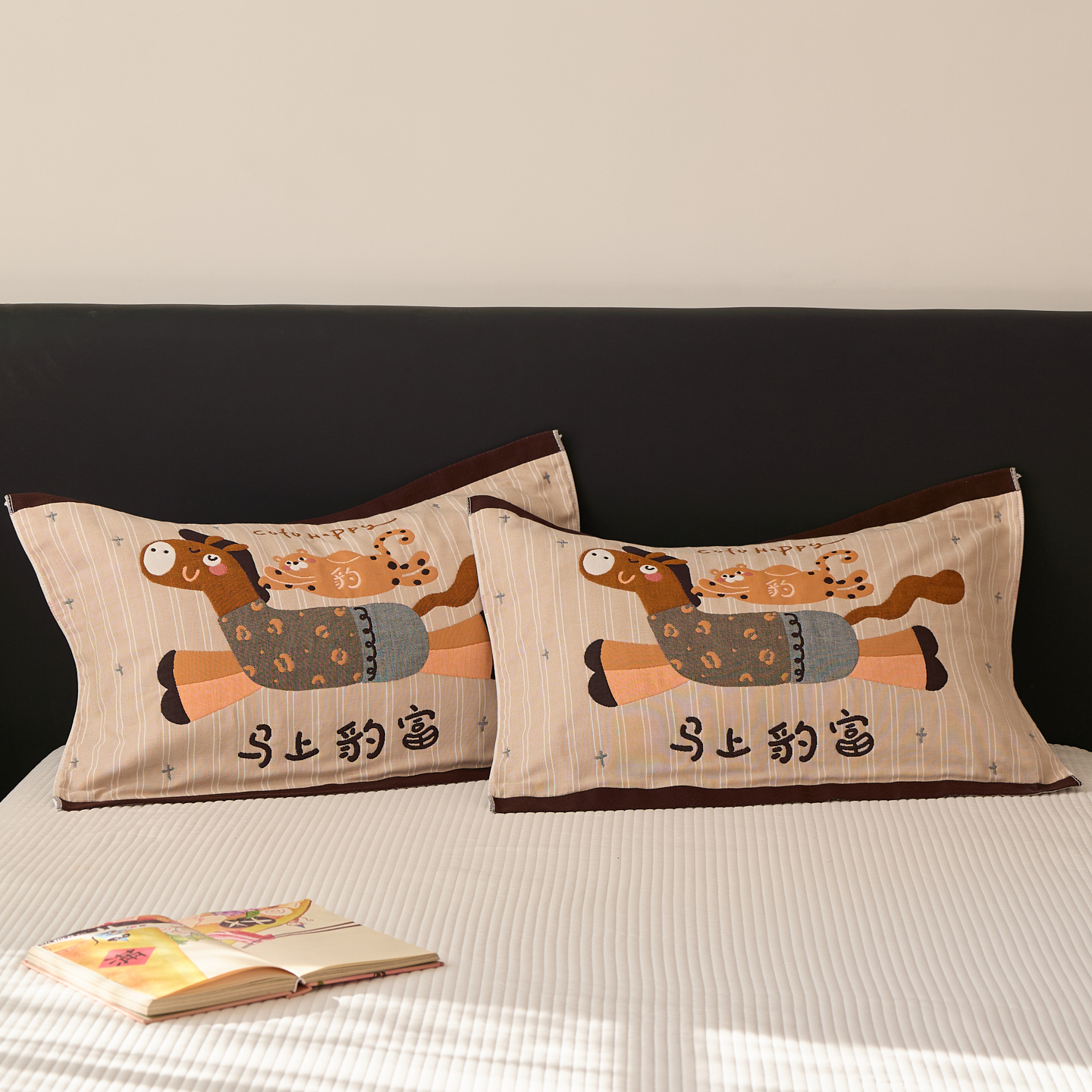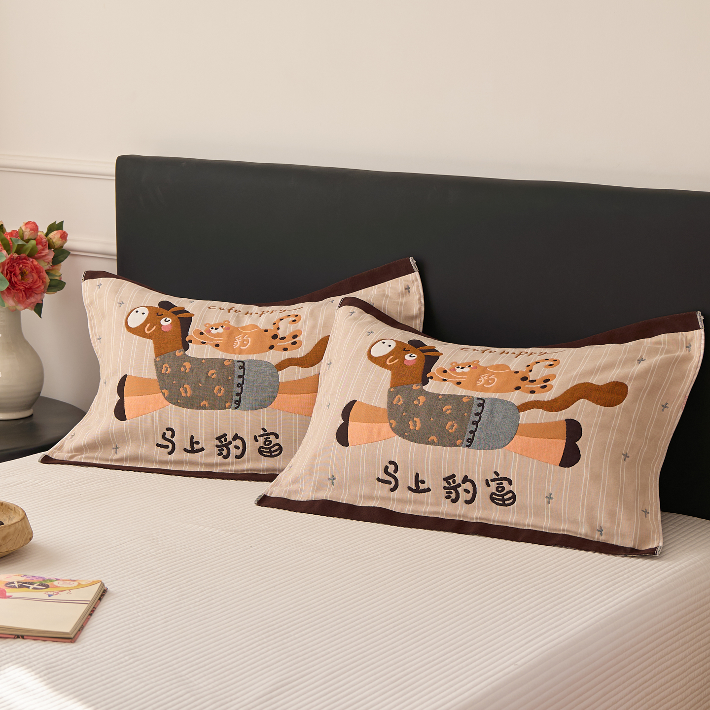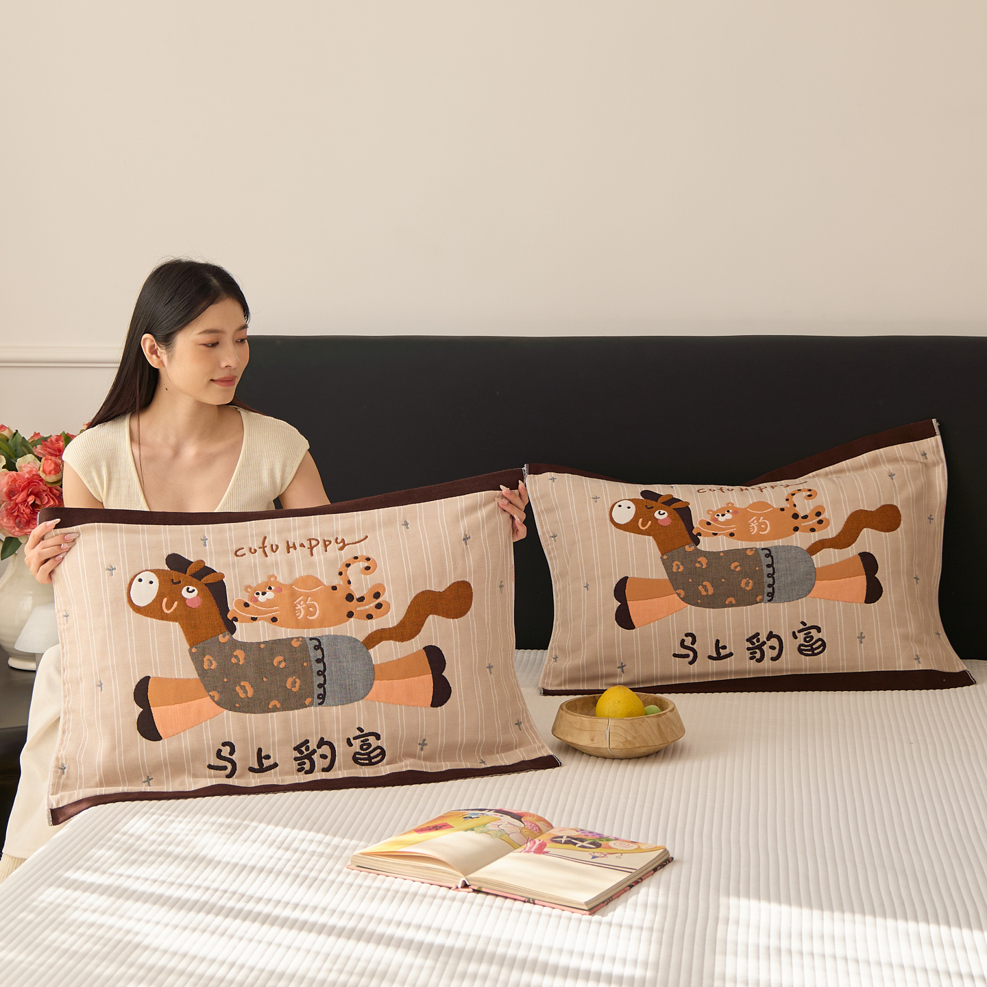 沐瑟家纺 2026新款纯棉八层枕巾-马 马上豹富