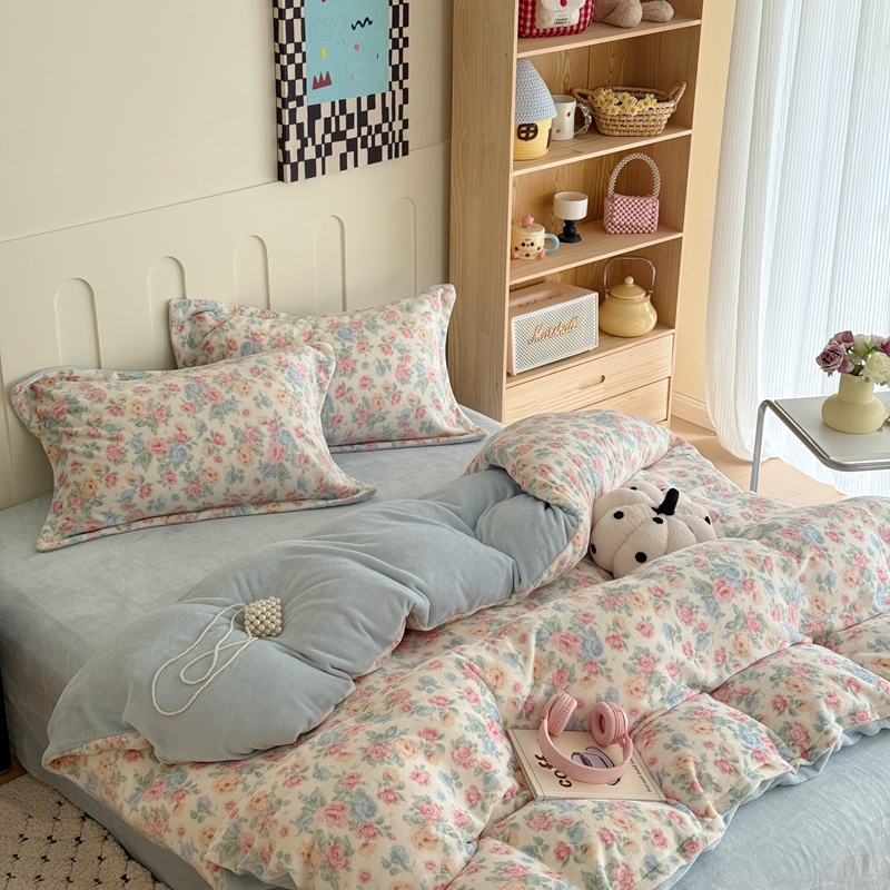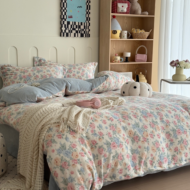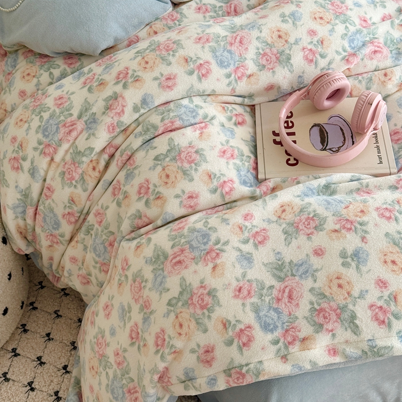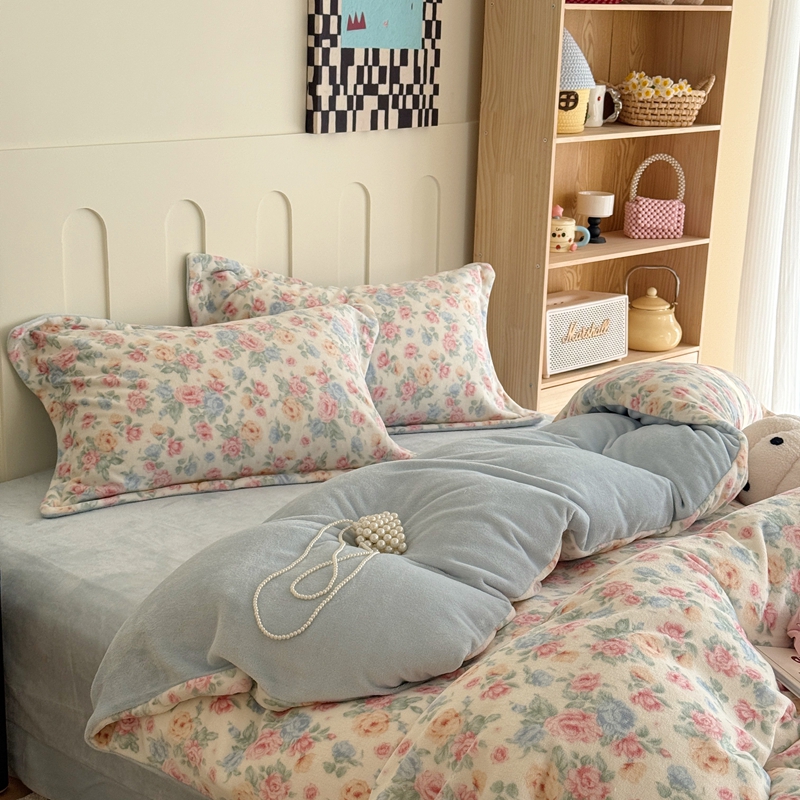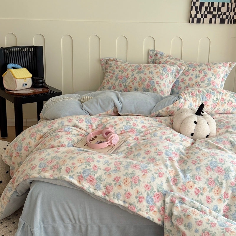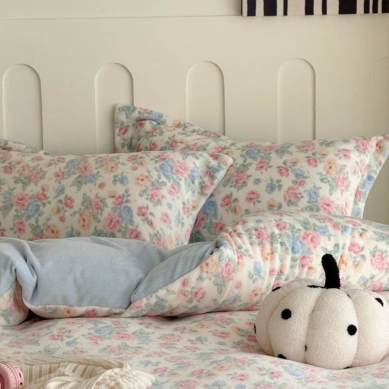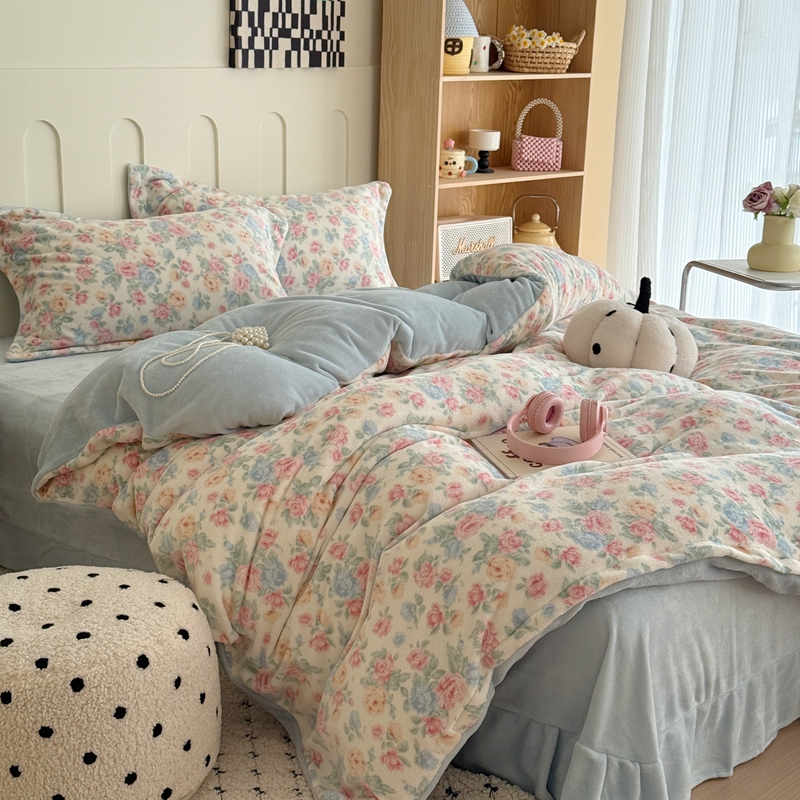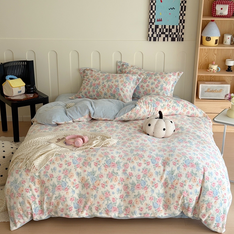 于果 2025新款牛奶绒印花四件套 夏日花开